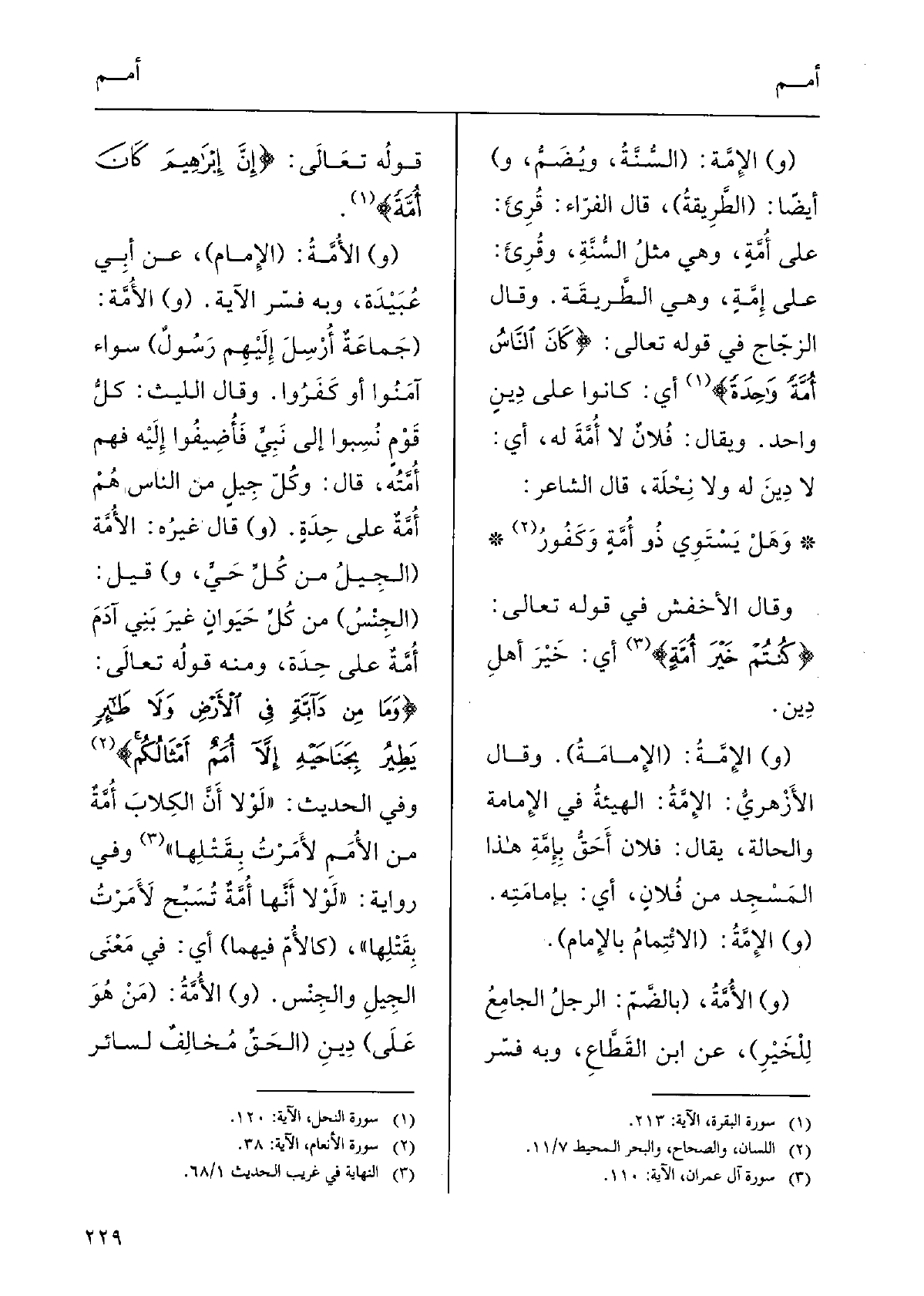 لَهُم يَمُرُّون عَلَيْهَا فِي أَسْفارهم، فَجعل الطريقَ {إِمامًا؛ لأنَّه يُؤَمُّ وَيُتَّبَعُ. (و) الإمامُ: (قَيِّمُ الأَمْرِ المُصْلِحُ لَهُ) . (و) الإمامُ: (القُرْآنُ) ؛ لأنَّه} يُؤْتَمُّ بِهِ. (والنَّبِيُّ صَلَّى اللَّه عَلَيْه وسلَّم) {إمِامُ} الأَئِمَّة. (والخَلِيفَةُ) إِمامُ الرَّعِيَة، وَقد بَقِي هَذَا اللَّقَبُ على مُلُوك اليَمَنِ إِلَى الآنَ. وَقَالَ أَبُو بَكْرٍ: يُقال: فلانٌ إِمامُ القَوْمِ: مَعْناه هُوَ المُتَقَدِّم عَلَيْهِم. ويكونُ {الإمامُ رَئِيسًا كَقَوْلِك:} إِمامُ المُسْلِمِين، (و) من ذَلِك الإمامُ بِمَعْنى (قَائِد الجُنْدِ) لِتَقَدُّمِهِ ورِياسَتِهِ. (و) الإِمَام: (مَا يَتَعَلَّمُهُ الغُلامُ كُلَّ يَوْمٍ) فِي المَكْتَب، ويُعْرَف أَيْضا بالسَّبَقِ محرَّكَةً. (و) الإمامُ: (مَا امْتُثِلَ عَلَيْه المِثالُ) قَالَ النَّابِغَة: