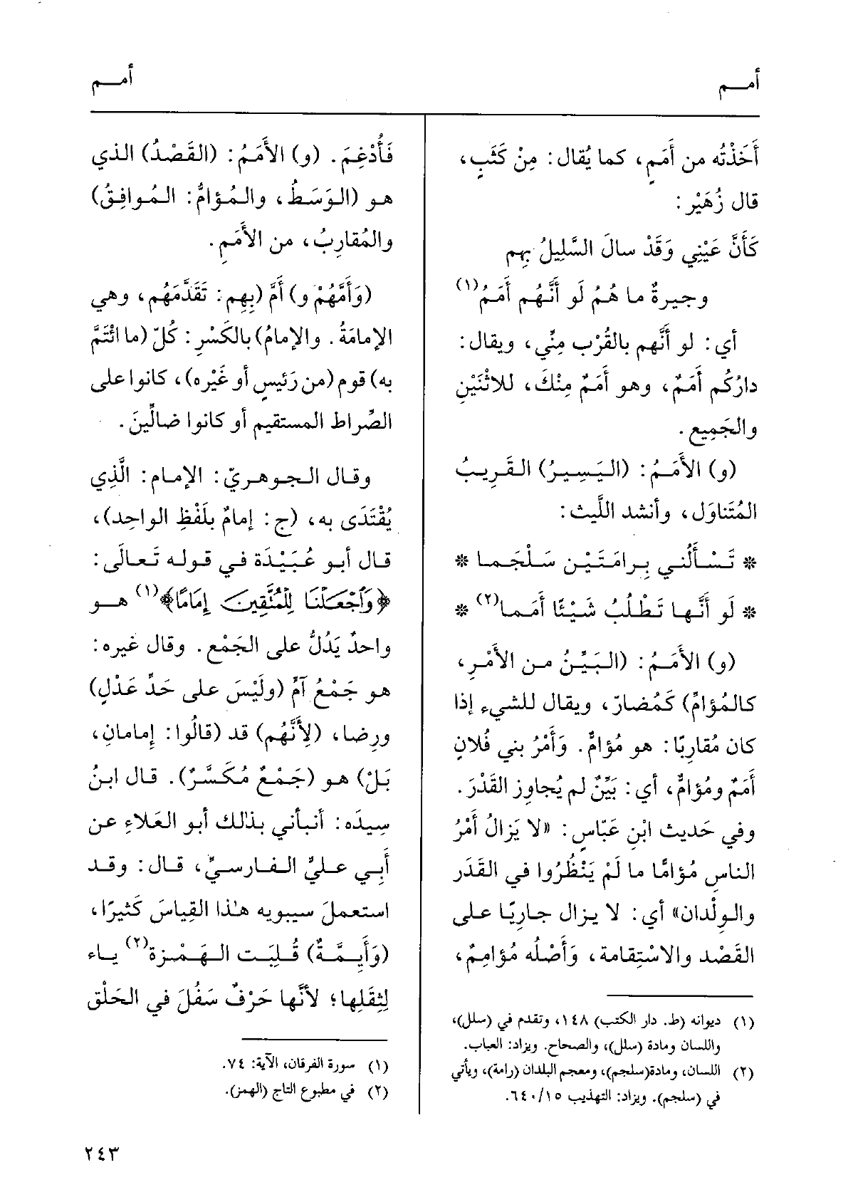 ( {والآمَةُ) ، بالمَدّ: (العَيْبُ) ، وَقد ذُكِرَ فِي التَّرْكِيب الَّذِي قَبْله. (و) } الآمَةُ: (النَّقْصُ والفضَاضَةُ) ، هَكَذَا فِي النُّسَخ بالفاءِ، والصَّواب بالغَيْن كَمَا هُوَ نَصُّ ابنِ الأَعْرابيّ، يُقَال: فِي ذلِكَ {آمَةٌ عَلَيْنَا، أَي نَقْصٌ وغضاضَة. (وَبَنُو} إِيّامٍ، كَكِذّابٍ: بَطْنٌ) ، هَكَذَا فِي النّسخ، وَهُوَ غلطٌ، وَالصَّوَاب كَكِتابٍ كَمَا ضَبطه غَيْرُ واحدٍ من الْأَئِمَّة، وَمِنْهُم زُبَيْدُ بنُ الحارِثِ الْآتِي ذِكْرُه. ( {والمُؤْيِمَةُ، كَمُحْسِنَةٍ) : هِيَ (المُوسِرَةُ وَلَا زَوْجَ لَهَا) ، نَقله الصاغانيّ. (} والأُيامُ، كَغُرابٍ وكِتابٍ) وَكَذَلِكَ الهُيامُ والهِيامُ: (داءٌ فِي الإِبِل) ، نَقله الفَرّاء. (و) {الإيامُ، كَكِتابٍ فَقَط: (الدُّخانُ) ، قَالَ أَبُو ذُؤَيْب: