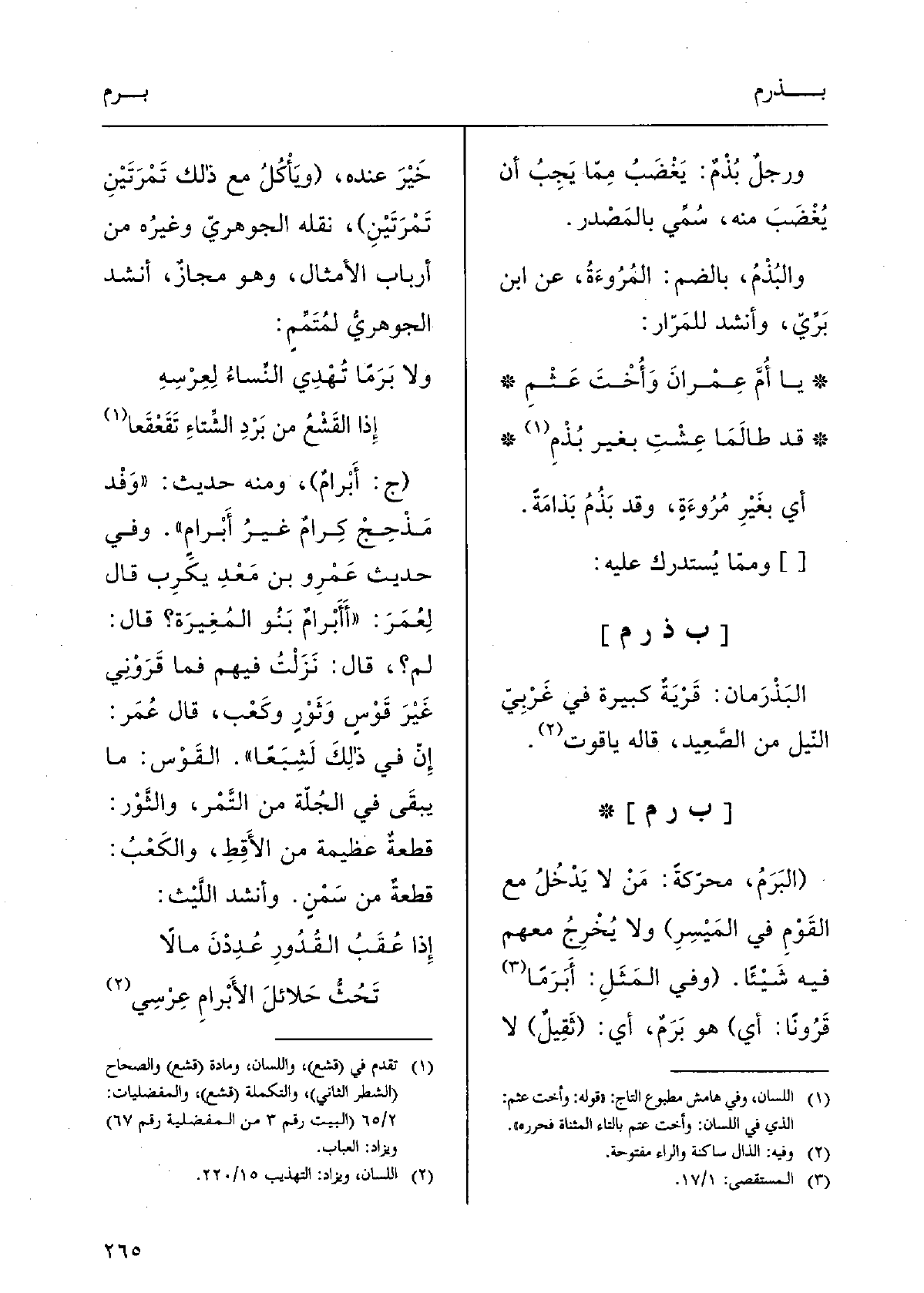 الْأَسْمَاء نعم سَاق ابْن حبَان فِي أول تَارِيخه خلاف ذَلِك وَهُوَ شَاذ كَذَا فِي فتح الْبَارِي لِلْحَافِظِ وَنَقله شَيخنَا رَحمَه الله تَعَالَى (وتصغيره بريه) بطرح الْهمزَة وَالْمِيم نَقله الْجَوْهَرِي عَن بَعضهم قَالَ شَيخنَا وَكَأَنَّهُم جَعَلُوهُ عَرَبيا وتصرفوا فِيهِ بِالتَّصْغِيرِ وَإِلَّا فالأعجمية لَا يدخلهَا شَيْء من التصريف بِالْكُلِّيَّةِ (أَو أبيره) وَذَلِكَ لِأَن الْألف من الأَصْل لِأَن بعْدهَا أَرْبَعَة أحرف أصُول والهمزة لَا تلْحق بَنَات الْأَرْبَعَة زَائِدَة فِي أَولهَا وَذَلِكَ يُوجب حذف آخِره كَمَا يحذف من سفرجل فَيُقَال سفيرج وَكَذَلِكَ القَوْل فِي إِسْمَعِيل وإسرافيل وَهَذَا قَول الْمبرد (و) بَعضهم يتَوَهَّم أَن الْهمزَة زَائِدَة إِذا كَانَ الِاسْم أعجميا فَلَا يعلم اشتقاقه فيصغره على (بريهيم) وسميعيل وسريفيل وَهَذَا قَول سِيبَوَيْهٍ وَهُوَ حسن وَالْأول قِيَاس هَذَا كُله نَص الصِّحَاح (ج أباره وأباريه وأبارهة وبراهيم وبراهم وبراهمة و) أجَاز ثَعْلَب (براه) بِكَسْر الْبَاء وَكَذَلِكَ جمع إِسْمَعِيل وإسرافيل كَمَا فِي الْعباب (والإبراهيميون اثْنَا عشر صحابيا والبراهمة قوم لَا يجوزون على الله تَعَالَى بعثة الرُّسُل) كَمَا فِي الصِّحَاح وهم طَائِفَة من أَصْحَاب برهم كَمَا فِي شرح الْمَقَاصِد وهم مجوس الْهِنْد وهم ثَلَاث فرق ويسمون عابدهم على معتقدهم برهمن كسفرجل مكسور الأول (والإبراهيمي تمر أسود) نسب إِلَى إِبْرَاهِيم (والإبراهيمية بواسط و) أَيْضا (بِجَزِيرَة ابْن عَمْرو) أَيْضا (بنهر عِيسَى) الْأَخِيرَة نسبت إِلَى إِبْرَاهِيم الإِمَام ابْن مُحَمَّد