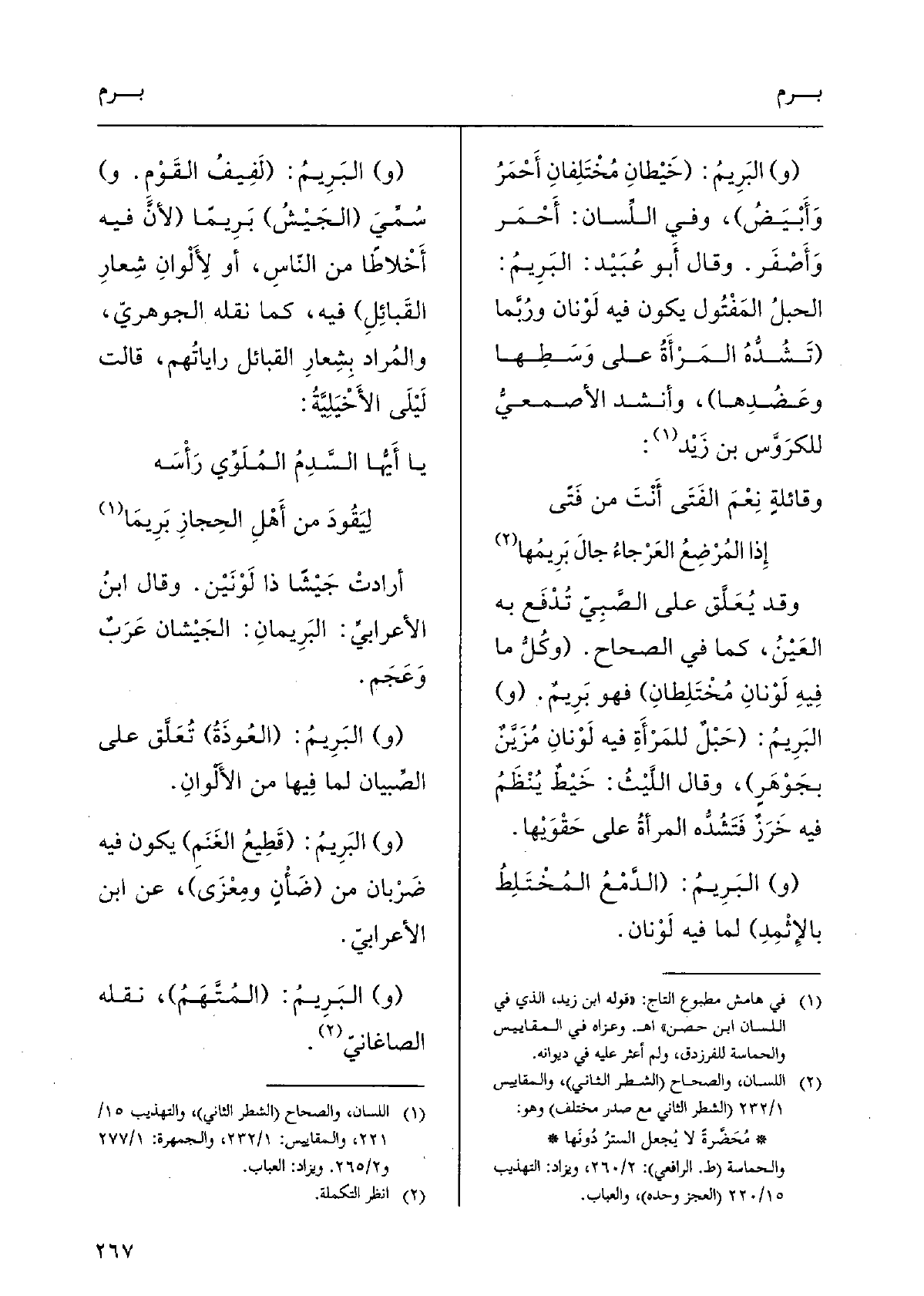 الذَّهَبِيّ فِي الكاشف عفير بن معدان الْمُؤَذّن وَهُوَ أَخُو أبي البرهسم هَذَا وَيَأْتِي للْمُصَنف ذكره فِي حضرم [ب ز م] (بزم عَلَيْهِ يبزم ويبزم) من حدى ضرب وَنصر بزما (عض بِمقدم أَسْنَانه) كَمَا فِي الصِّحَاح وَقيل البزم العض بِمقدم الْفَم وَهُوَ أخف من العض (أَو) هُوَ شدَّة العض (بالثنايا والرباعيات) كَمَا فِي الْمُحكم وَقَالَ أَبُو زيد البزم العض بالثنايا دون الأنياب والرباعيات أَخذ ذَلِك من بزم الرَّامِي (و) بزم (بالعبء) إِذا (حمله فاستمر بِهِ) وَقيل نَهَضَ بِهِ (و) بزم (النَّاقة) يبزمها ويبزمها بزما (حلبها بالسبابة والإبهام) فَقَط وَكَذَلِكَ الْمصر (و) بزم (فلَانا ثَوْبه) بزما (سلبه إِيَّاه) كبزه إِيَّاه عَن كرَاع (والبزم صريمة الْأَمر) عَن الْفراء (و) البزم (الغليظ من القَوْل) نَقله الصَّاغَانِي (و) البزم (الْكسر) وَقد بزمه بزما نَقله الصَّاغَانِي أَيْضا (و) البزم (أَن تَأْخُذ الْوتر بالسبابة والإبهام ثمَّ ترسله) وَمِنْه أَخذ بزم النَّاقة قَالَه أَبُو زيد (وَهُوَ ذُو مبازمة فِي الْأَمر) أَي (ذُو صريمة والبزيم) كأمير (الخوصة يشد بهَا البقل و) أَيْضا (مَا يبْقى من المرق فِي أَسْفَل الْقدر من غير لحم) وَقيل هُوَ الوزيم (وَقَول الْجَوْهَرِي البزيم خيط القلادة) قَالَ الشَّاعِر