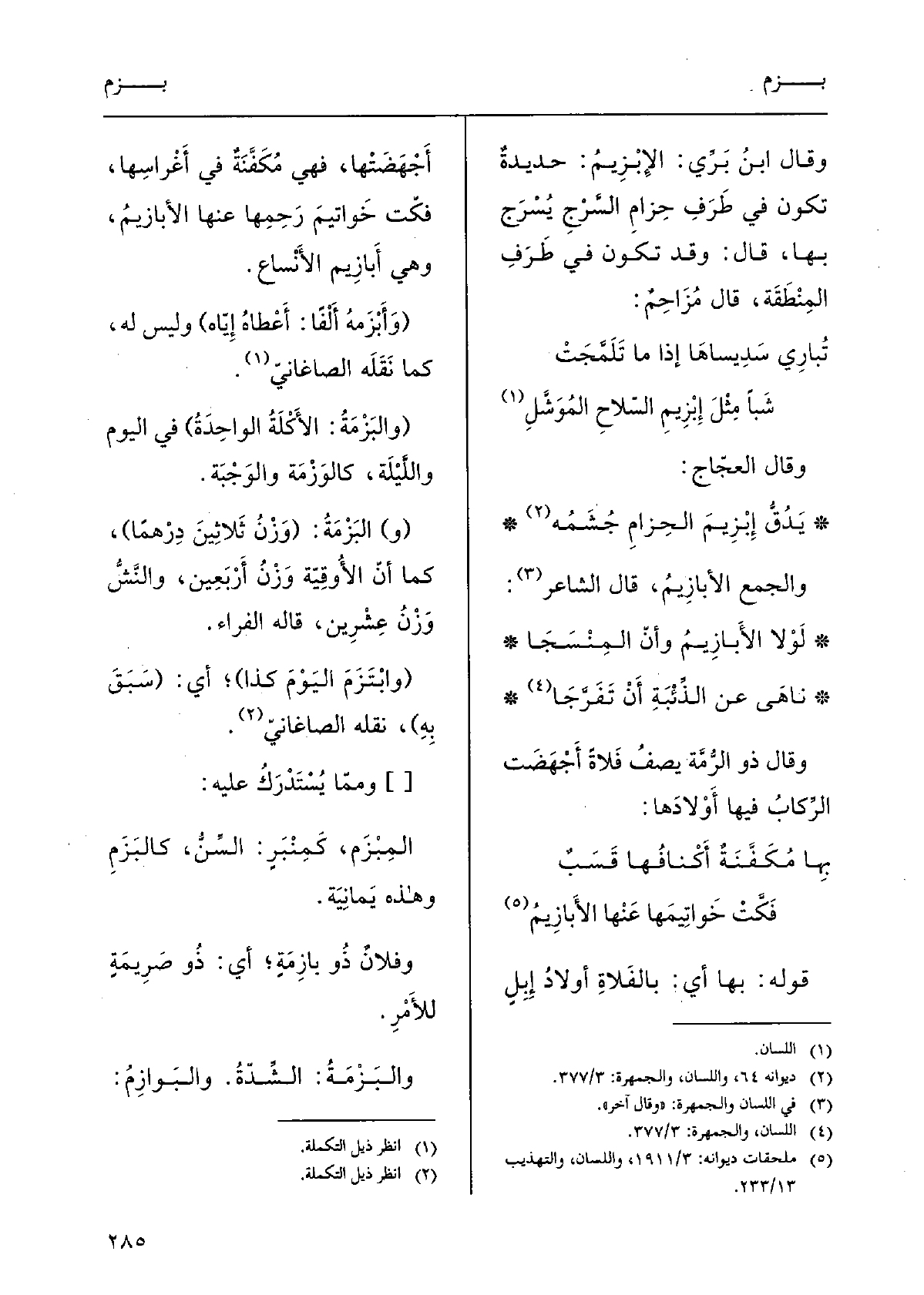 [] وَمِمّا يُسْتَدْرك عَلَيْهِ: البَلَمَةُ، محرَّكَةً: بَرَمَةُ العِضاهِ، عَن أبي حنيفَة. وسَيْفٌ بَيْلَمِيٌّ: أَبْيَضُ. وَنَخْلٌ مُبَلَّمٌ، كَمُعَظَّم: حَوْلَه الأَبْلَمُ، وَهِي البَقْلَة المَذْكُورة، قَالَ: