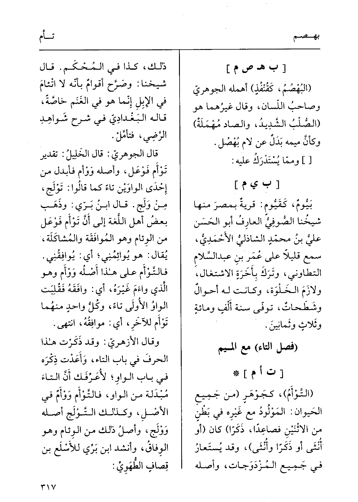 (و) يُقالُ: (وَلَدَتْهُ} لِتِمٍّ {وتِمامٍ) ، بكَسْرِهما، (ويُفْتَحُ الثَّانِي، أَي) بَلَّغَتْه (تَمام الخَلْق) ، أَي: تَمَّ خَلْقُه، وحكَى ابنُ بَرِّي عَن الأصمعيِّ: وَلَدَتْه التَّمامَ، بِالْألف وَاللَّام، قَالَ: وَلَا تجيءُ نَكرَةً إِلاّ فِي الشِّعْر.