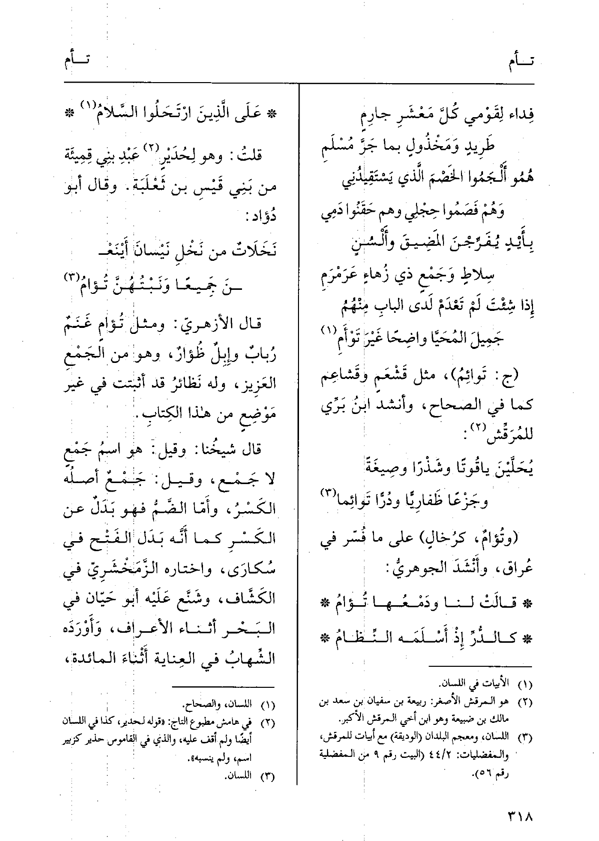 أَي: تَمَّ عَرَجُه كَسْرًا. كَذَا فِي النّسخ وَالصَّوَاب:} كَتَتمَّمَ فيهمَا، أَي: بتاءين.