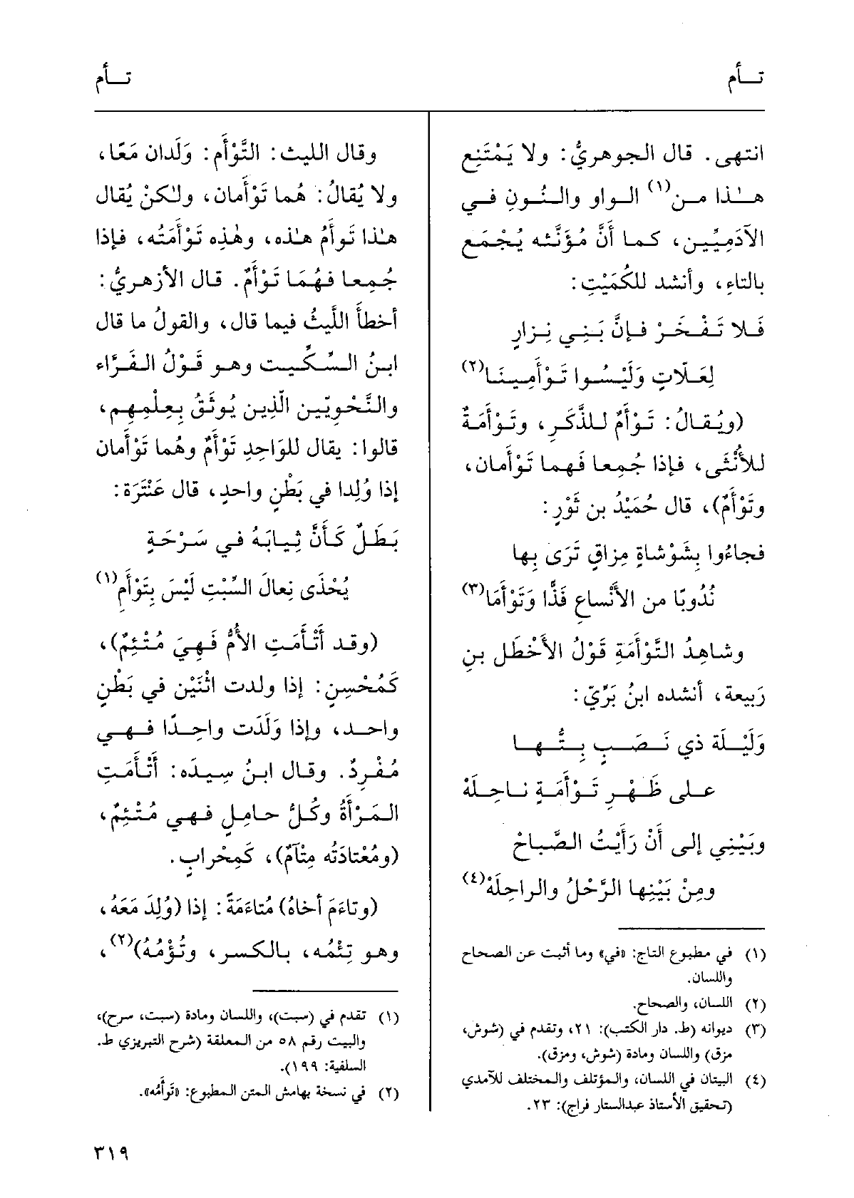 قَالَ الأزهريُّ: ومَنْ جعل} التَّمائم سُيُورًا فغَيْرُ مُصِيبٍ، وأمّا قولُ الفَرَزْدَقِ: