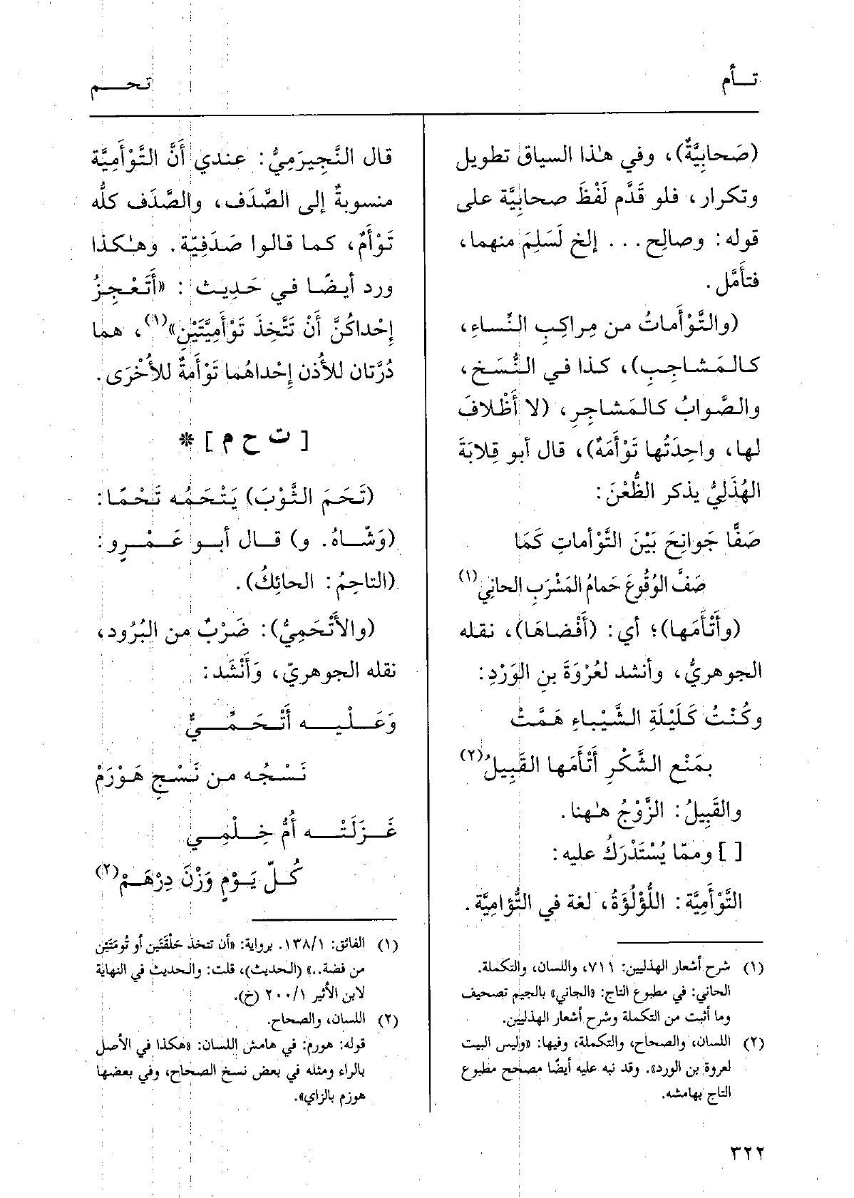 وَقَالَ اللّيْثُ: {التَّمْتَمَةُ فِي الكَلام أَن لَا يُبِينَ اللِّسان، يُخْطِيءُ مَوْضِعَ الحَرْف فَيَرْجِع إِلَى لَفْظٍ كَأَنَّه التاءُ والميمُ، وإنْ لم يكن بَيِّنًا. وَقَالَ المُبَرّد: التَّمْتَمَة: التَّرْدِيدُ فِي التَّاء، والفَأْفَأَةُ: التَّرْدِيدُ فِي الفاءِ، (فَهُوَ} تَمْتامٌ وَهِي {تَمْتامَةٌ) ، وَلم يَقُلْ: وَهِي بهاءٍ، وكَأَنَّهُ نَسِيَ اصْطِلاحه.