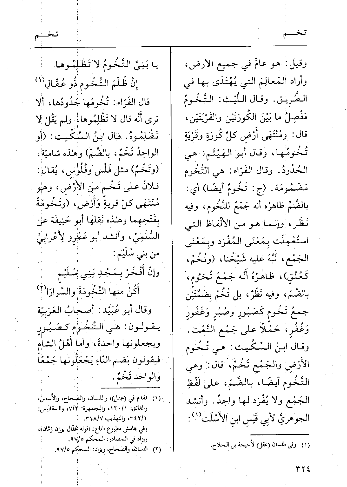 (التَّنُّومُ، كَتَنُّورٍ: شَجَرٌ) من الأَغْلاثِ فِيهِ سَوادٌ و (لَهُ ثَمَرٌ) تَأْكُله النَّعام؛ ولِحُبِّ النَّعامِ لَهُ قَالَ زُهَيْرٌ فِي صِفَةِ الظَّلِيم: