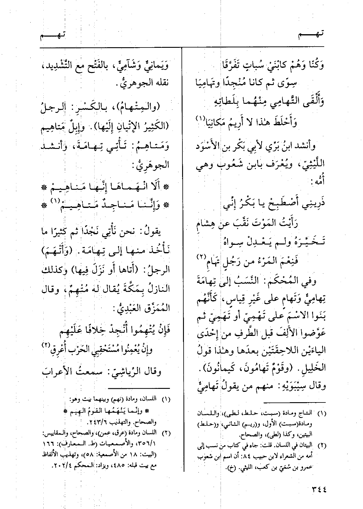 (الثّانِي: التَّرْتِيب، أَوْلا تَقْتَضيه كَقَوْلِه عَزَّ وَجَلَّ: {وَبَدَأَ خَلْقَ الإِنسَانِ مِن طِينٍ (7) ثُمَّ جَعَلَ نَسْلَهُ} الْآيَة) . وَقَالَ اللَّيْث:! ثُمَّ حرفٌ من حُرُوف النَّسَق لَا يُشَرَّكُ مَا بَعْدَها بِمَا قَبْلَها، إِلَّا أَنّها تُبَيِّنُ الآخِرَ