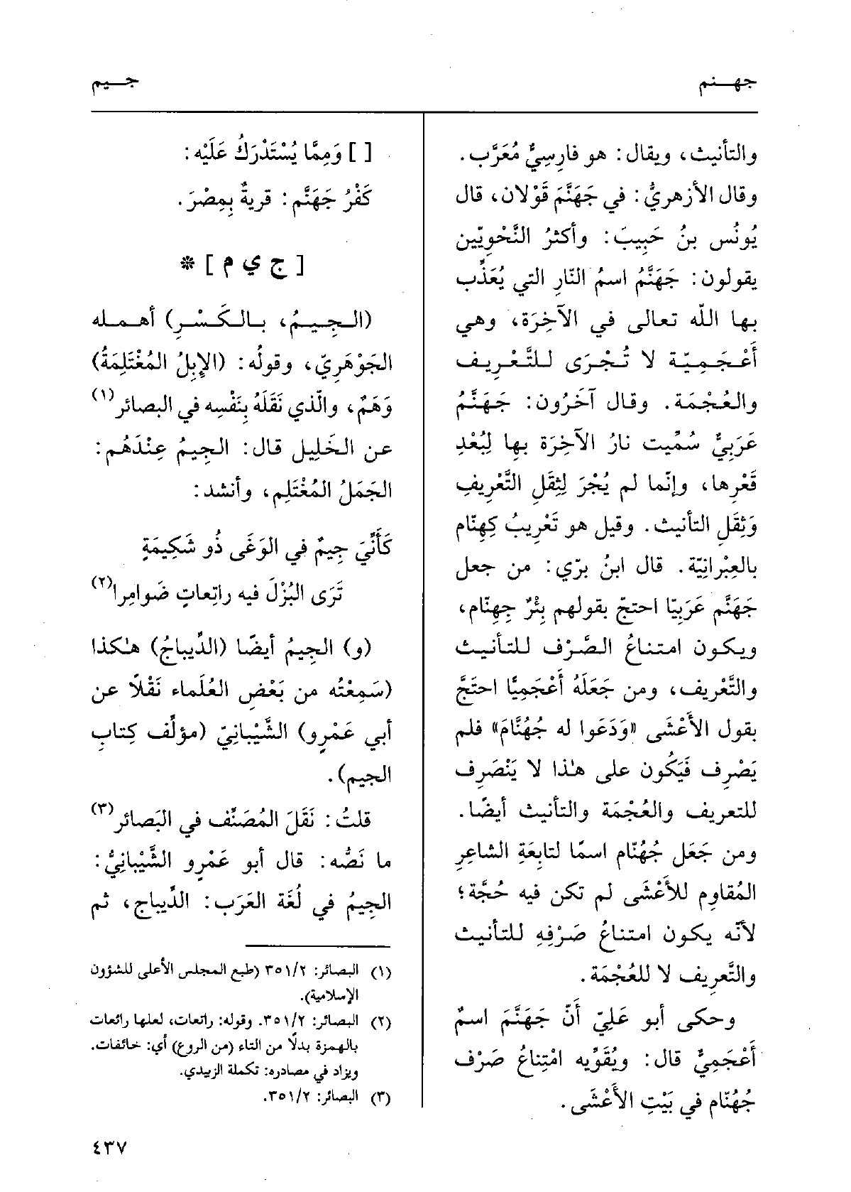 تَعْرِفُها فِي الجاهِلِيَّة والإِسْلام، وَمَا وَراءَ المَنارِ لَيْس من الحَرَمِ يَحِلُّ صَيْدُه لمن لَمْ يكن مُحْرِمًا، وشاهِدُ المُحَرَّم قولُ الأَعْشَى: