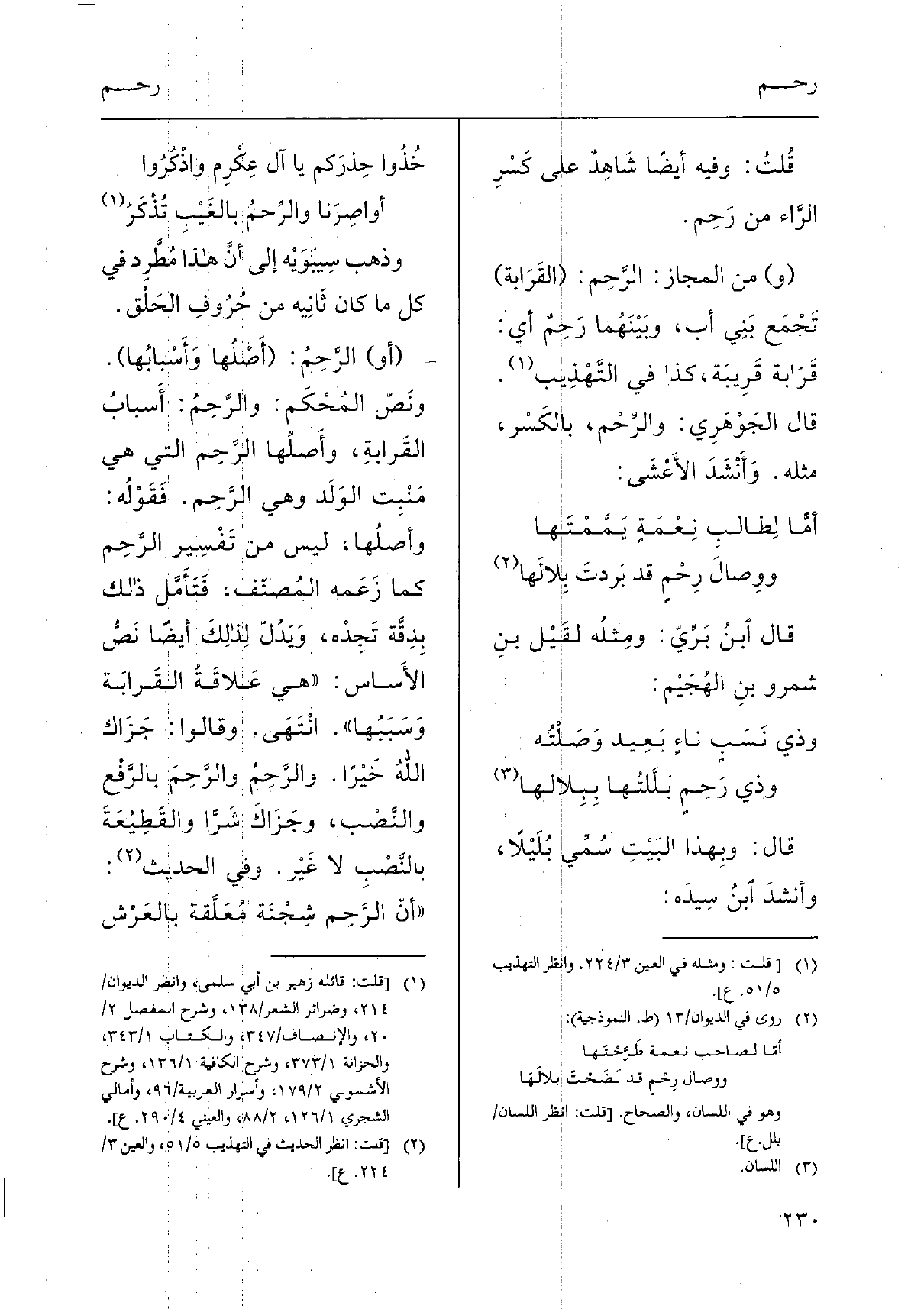 قُلتُ: وَفِيه أَيْضا شَاهِدٌ على كَسْرِ الرّاء من رَحِم.