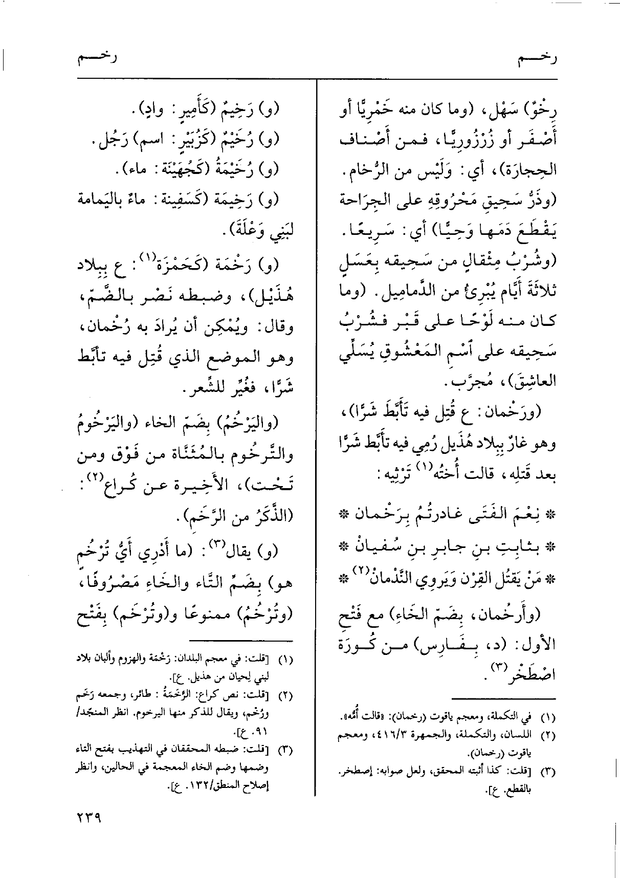 (و) رَخْمَة (كَحَمْزَة: ع بِبِلاد هُذَيْل) ، وَضَبطه نَصْر بالضَّمَ، وَقَالَ: ويُمْكِن أَن يُرادَ بِهِ رُخْمان، وَهُوَ الْموضع الَّذِي قُتِل فِيهِ تأبَّط شَرًّا، فغُيِّر للشِّعر.