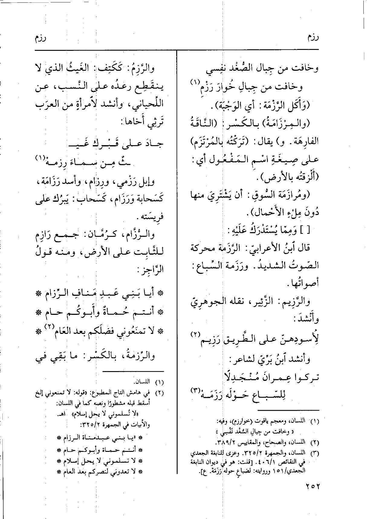 والرَّزِمُ: كَكَتِف: الغَيثُ الَّذِي لَا ينقَطَع رعدُه على النَّسب، عَن اللَّحياني، وَأنْشد لاْمرأةٍ من العرَب تَرثِي أَخاها: