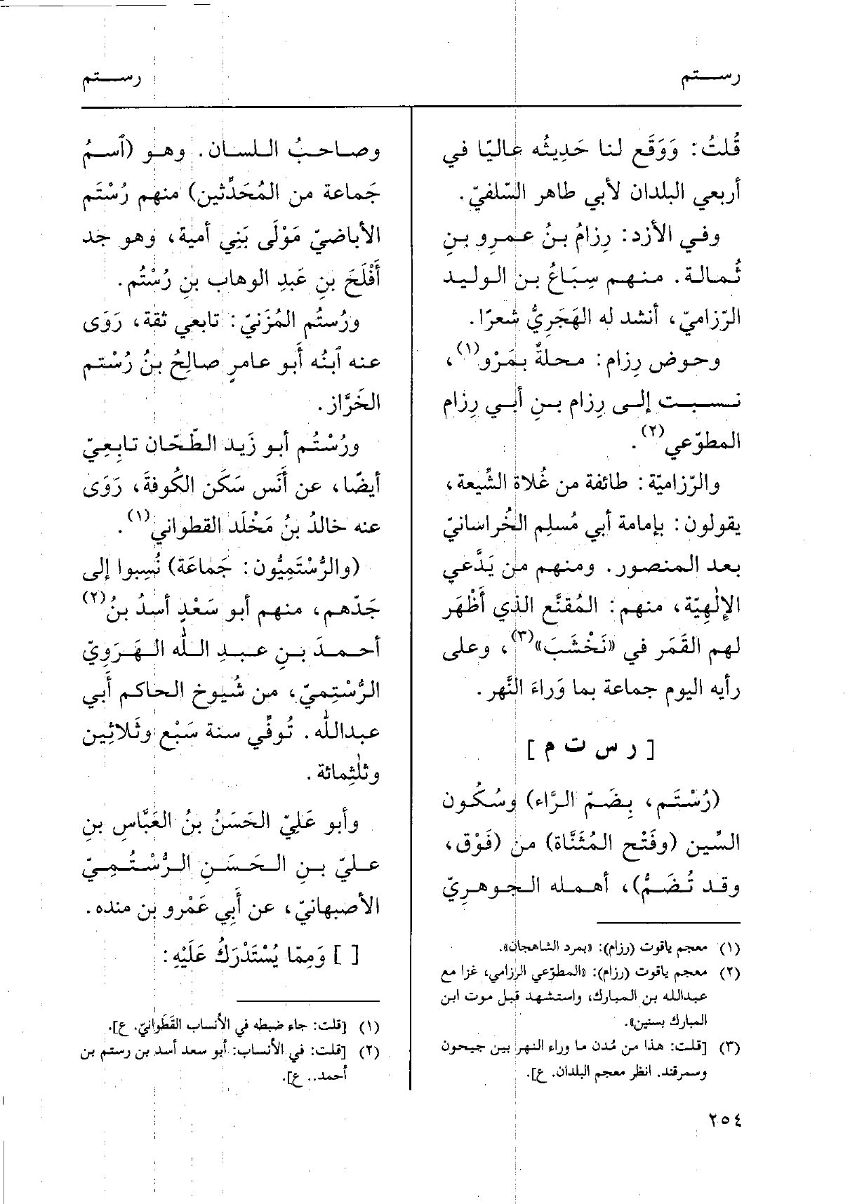 (والرُّسْتَمِيُّون: جَماعَة) نُسِبوا إِلَى جَدّهم، مِنْهُم أَبُو سَعْدٍ أسدُ بنُ أحمدَ بنِ عبدِ الله الهَرَوِيّ الرُّسْتِميّ، من شُيوخ الْحَاكِم أَبي عبد الله. تُوفِّي سنة سَبْع وثَلاثِين وثلثِمائة.