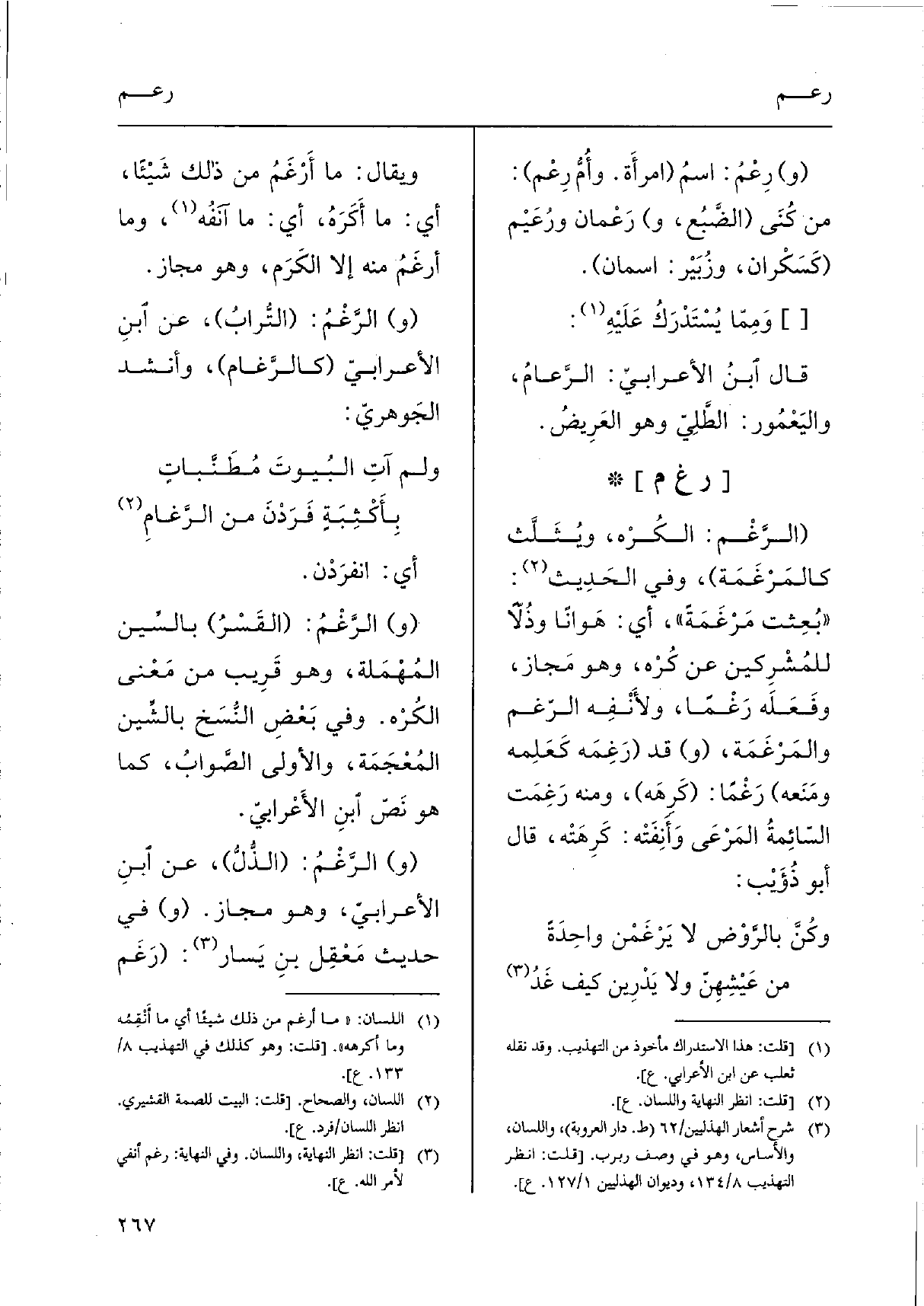 (و) الرَّغْمُ: (القَسْرُ) بالسِّين المُهْمَلة، وَهُوَ قَرِيب من مَعْنى الكُرْه. وَفِي بَعْضِ النُّسَخ بالشِّين المُعْجَمَة، وَالْأولَى الصَّوابُ، كَمَا هُوَ نَصّ ابنِ الأَعْرابيّ.