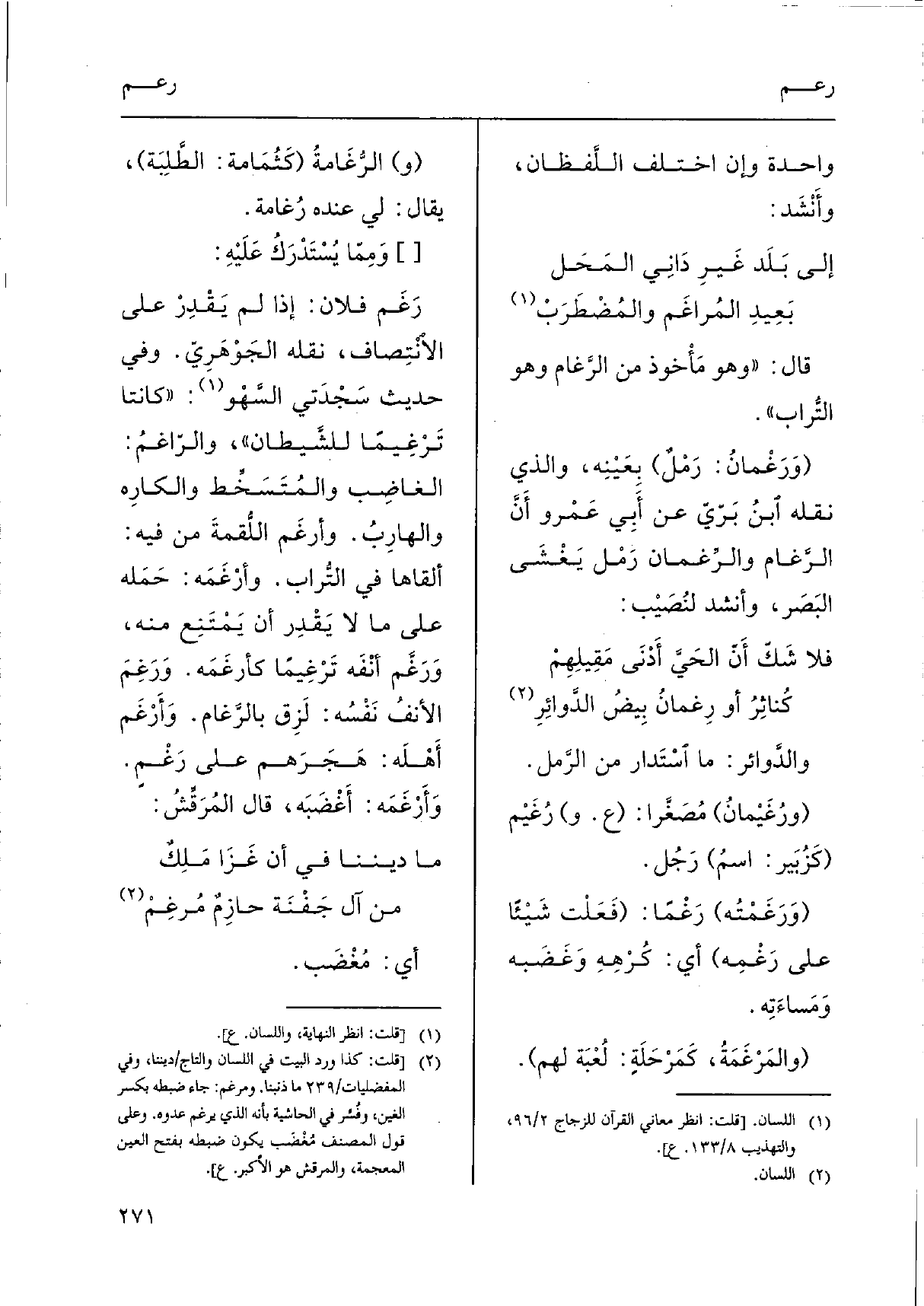 قَالَ: " وَهُوَ مَأْخوذ من الرَّغام وَهُوَ التُّراب ".