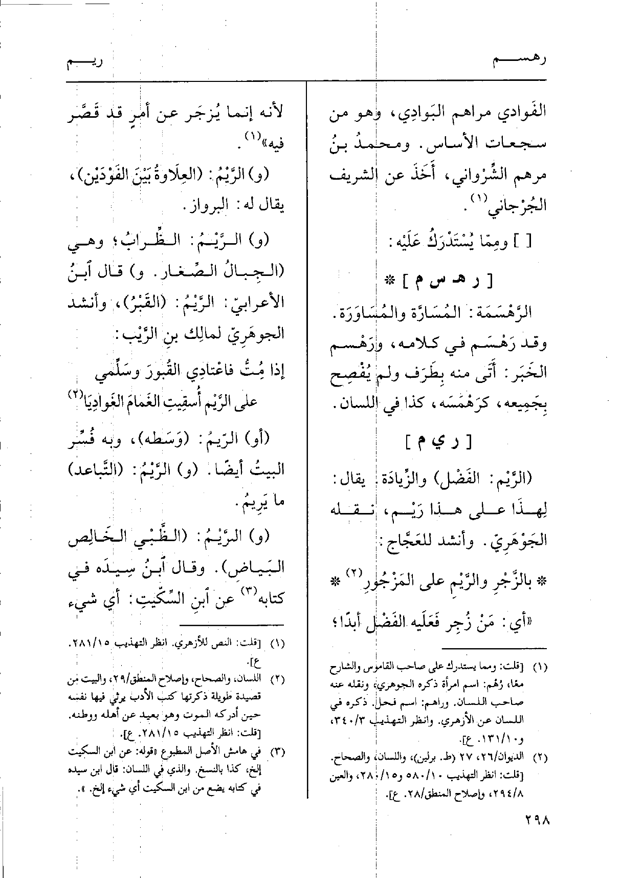 ( {الرَّيْم: الفَضْل) والزِّيادَة. يُقَال: لِهذَا على هَذَا} رَيْم، نَقله الجَوْهَرِيّ. وَأنْشد للعَجَّاج: