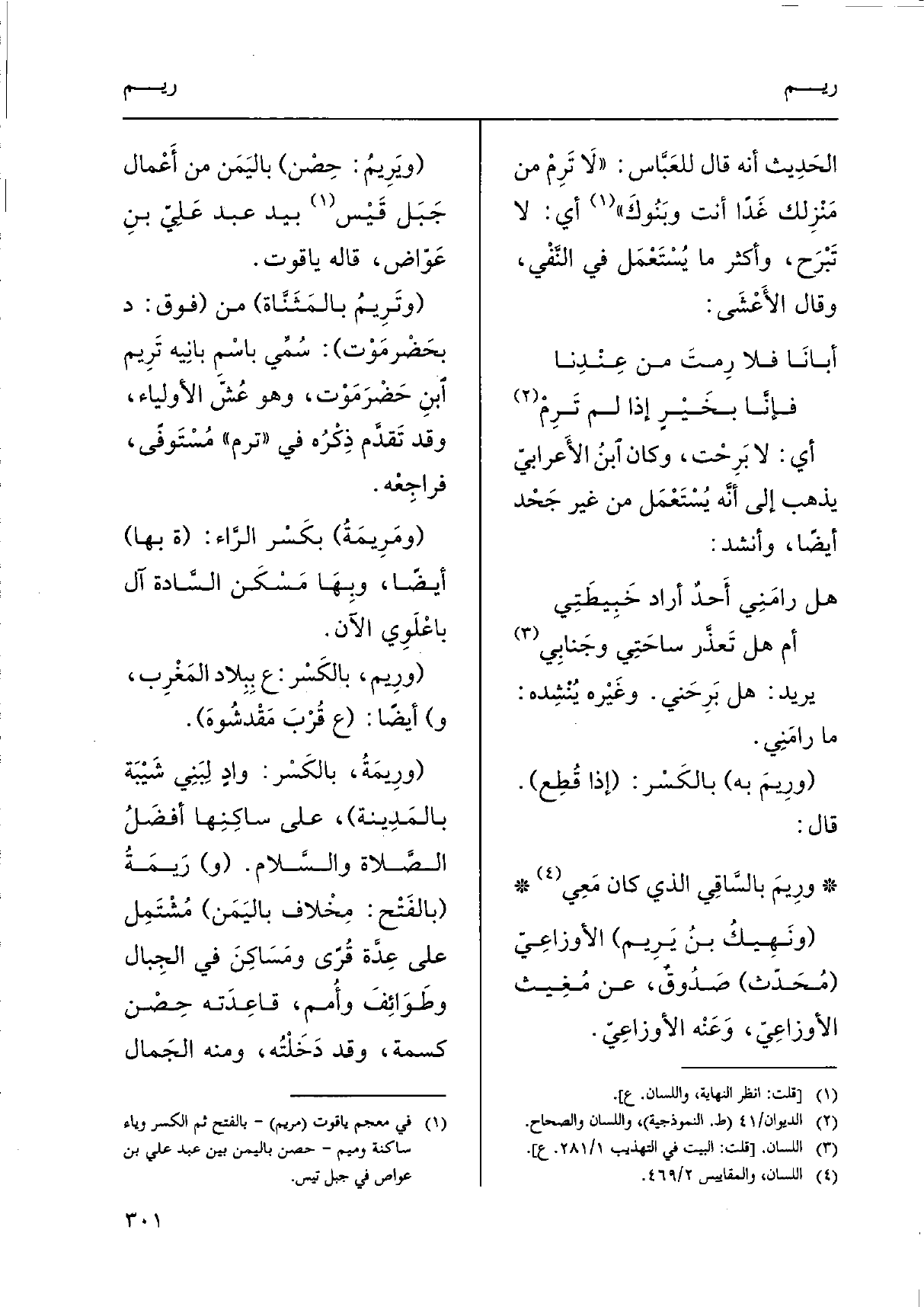 ( {ويَرِيمُ: حِصْن) باليَمَن من أَعْمال جَبَل قَيْس بيد عبد عَلِيّ بنِ عَوّاض، قَالَه ياقوت.