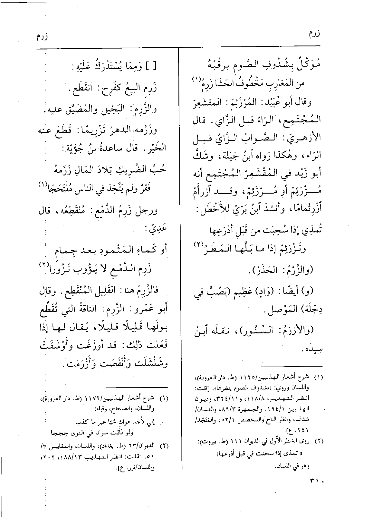 وزَرَّمه الدهرُ تَزْرِيمًا: قَطَعَ عَنهُ الخَيْر. قَالَ ساعدةُ بنُ جُؤَيّة:
