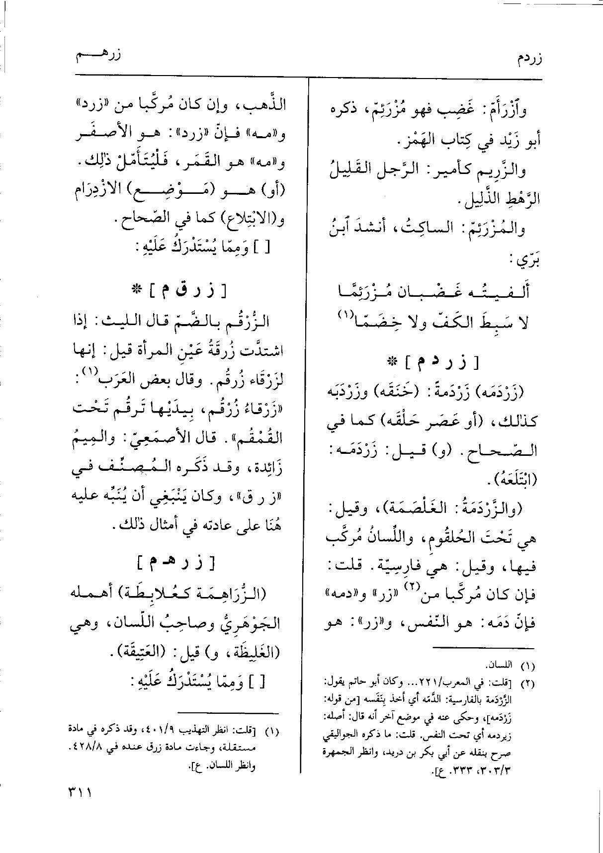 وازْرَأَمّ: غَضِب فَهُوَ مُزْرَئِمّ، ذكره أَبُو زَيْد فِي كِتاب الهَمْز.