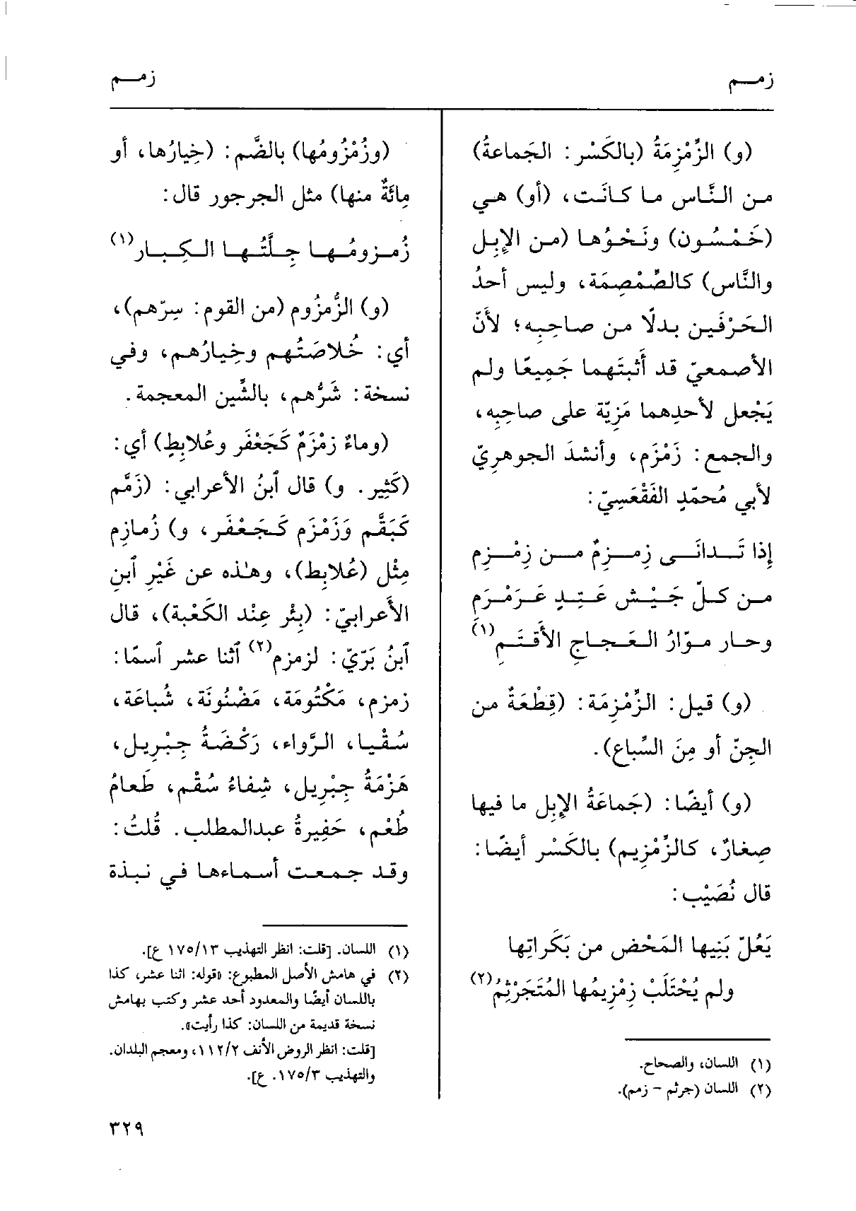 (} زُمزومُها جِلَّتُها الكِبار ... )