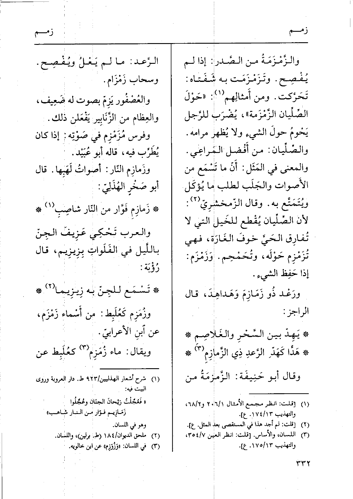} وزَمازِم النّار: أصواتُ لَهَبِها. قَالَ أَبُو صَخْرٍ الهُذَلِيّ: