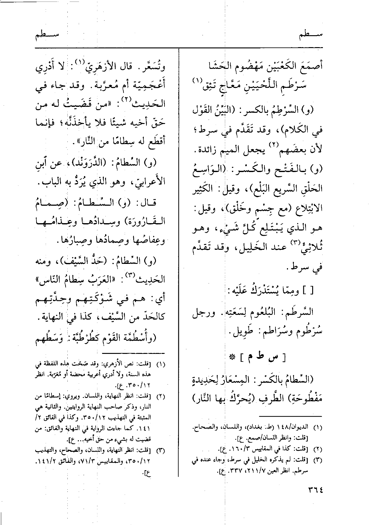 [] ومِمّا يُسْتَدْرَكُ عَلَيْه:
