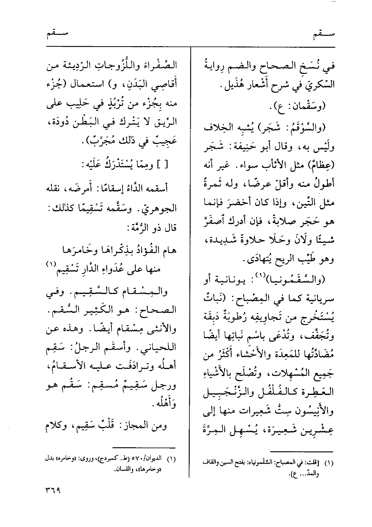 (والسَّوْقَمُ: شَجَر) يُشْبِه الخِلاف ولَيْس بِهِ، وَقَالَ أَبُو حَنِيفة: شَجَر (عِظامٌ) مثل الأثأب سَوَاء. غير أَنه أطولُ مِنْهُ وأقلّ عرضا، وَله ثَمرةٌ مثل التِّين، وَإِذا كَانَ أخضرَ فَإِنَّمَا هُوَ حَجَر صلابةً، فَإِن أدْرك اصفَرَّ شَيْئا ولاَنَ وحَلاَ حلاوةً شَدِيدة، وَهُوَ طَيِّب الرّيح يُتهادَى.