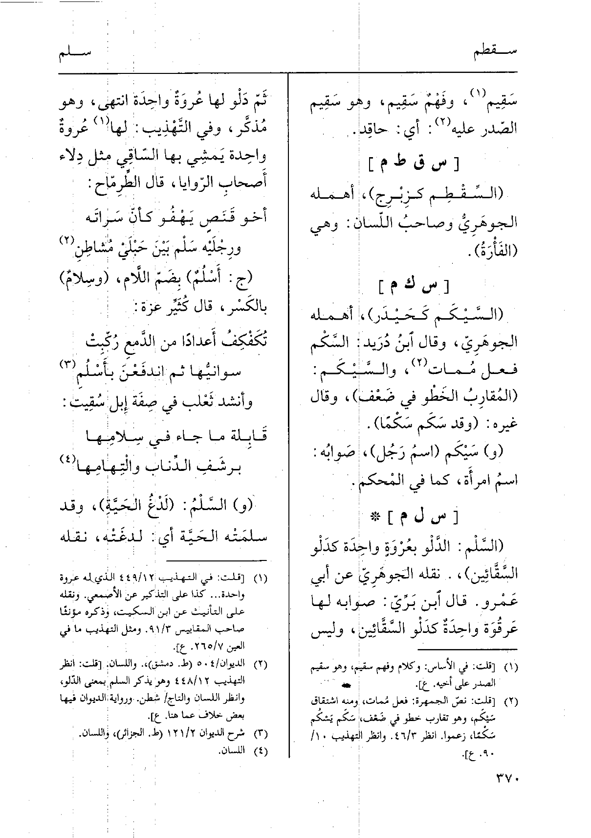 (ج: أسْلُمٌ) بِضَمّ اللاَّم، (وسِلامٌ) بالكَسْرِ، قَالَ كُثَيِّر عزة: