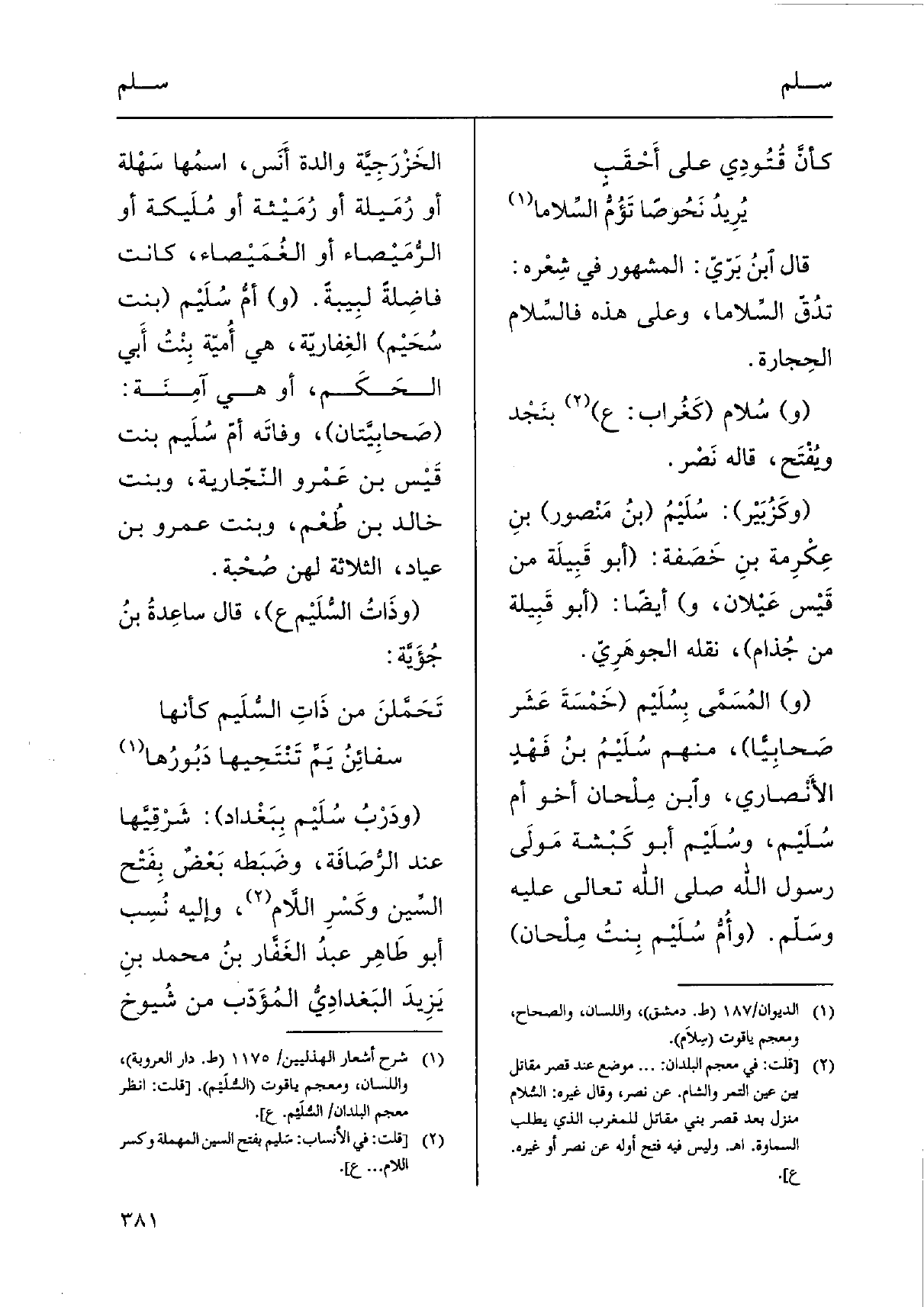 (وذَاتُ السُّلَيْم ع) ، قَالَ ساعِدةُ بنُ جُؤَيَّة: