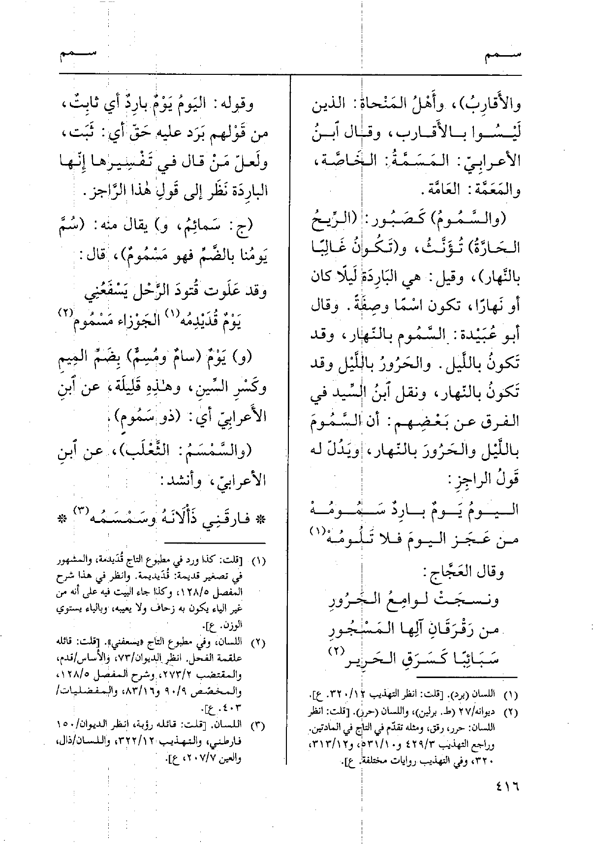 (اليومُ يَومٌ بارِدٌ {سَمُومُهْ ... من عَجَز اليومَ فَلَا تَلُومُهْ)