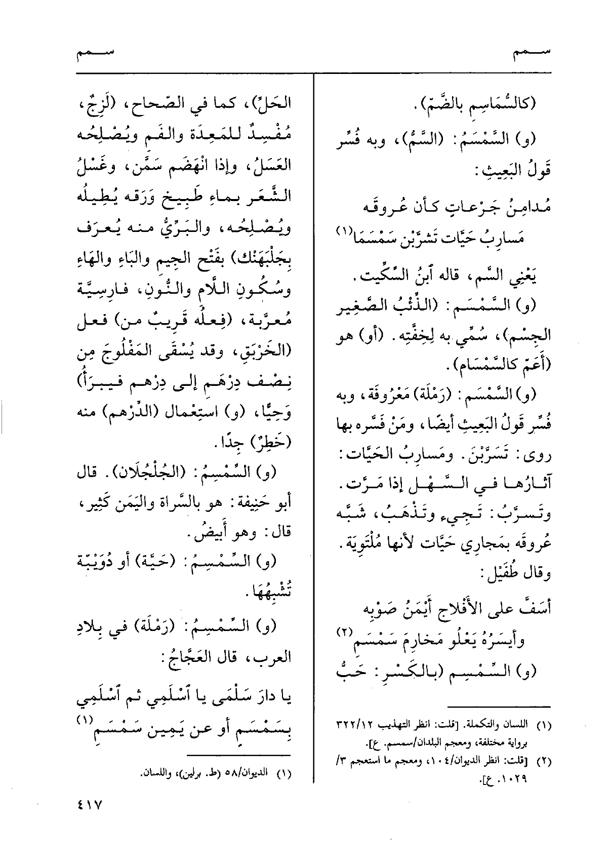 (و) } السَّمْسَمُ: (السَّمُّ) ، وَبِه فُسِّر قَولُ البَعِيثِ: