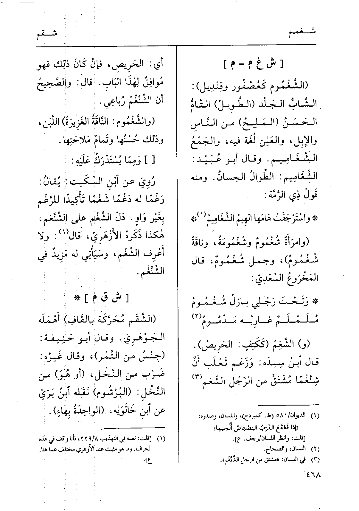 (والشُّغْمُوم: النَّاقَةُ الغَزِيرَةُ) اللَّبَن، وَذَلِكَ حُسْنُها وتَمامُ مَلاحَتِها.