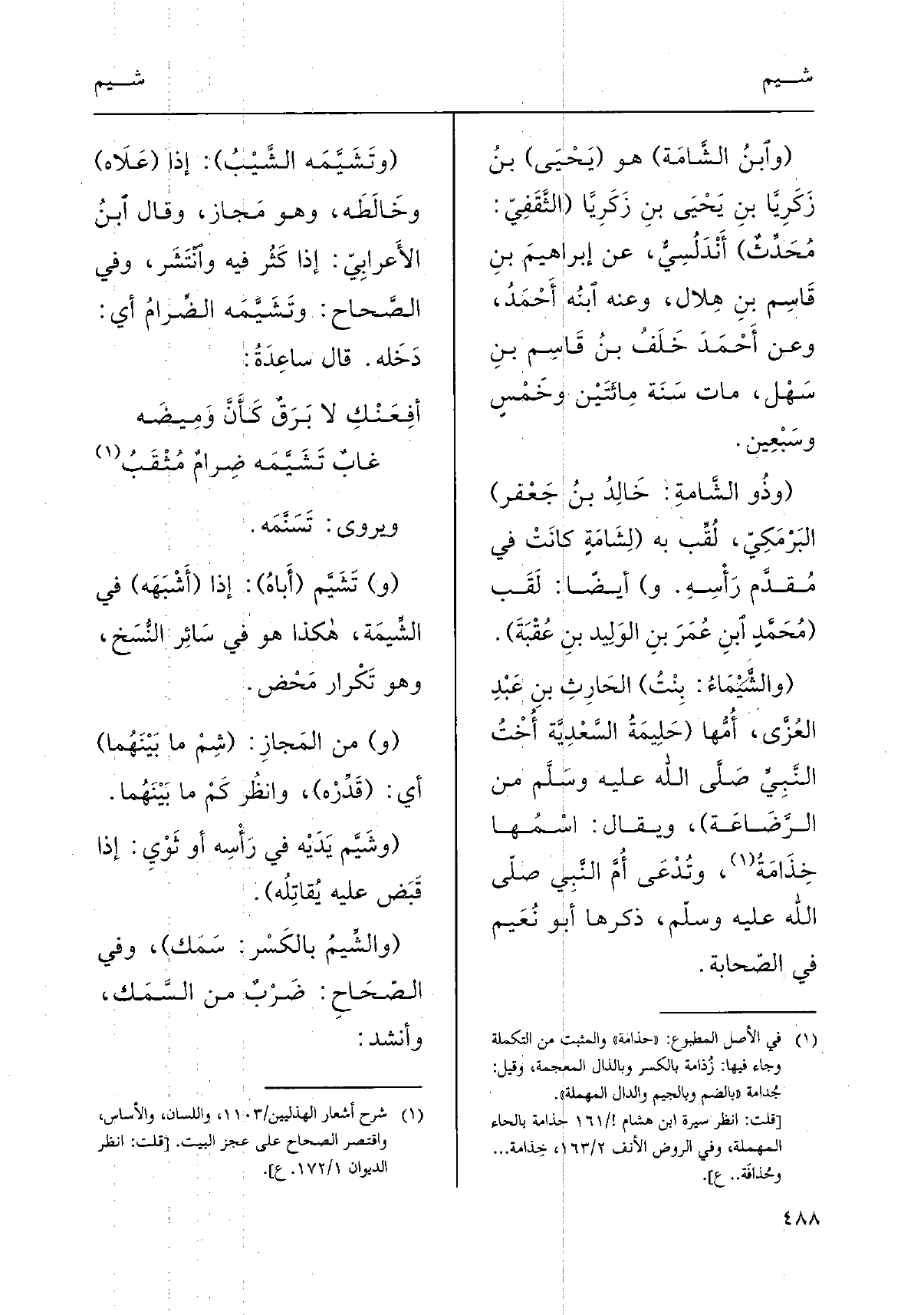 ( {والشَّيْمَاءُ: بِنْتُ) الحَارِثِ بنِ عَبْدِ العُزَّى، أُمُّها (حَلِيمَةُ السَّعْدِيَّة أُخْتُ النَّبِيِّ [