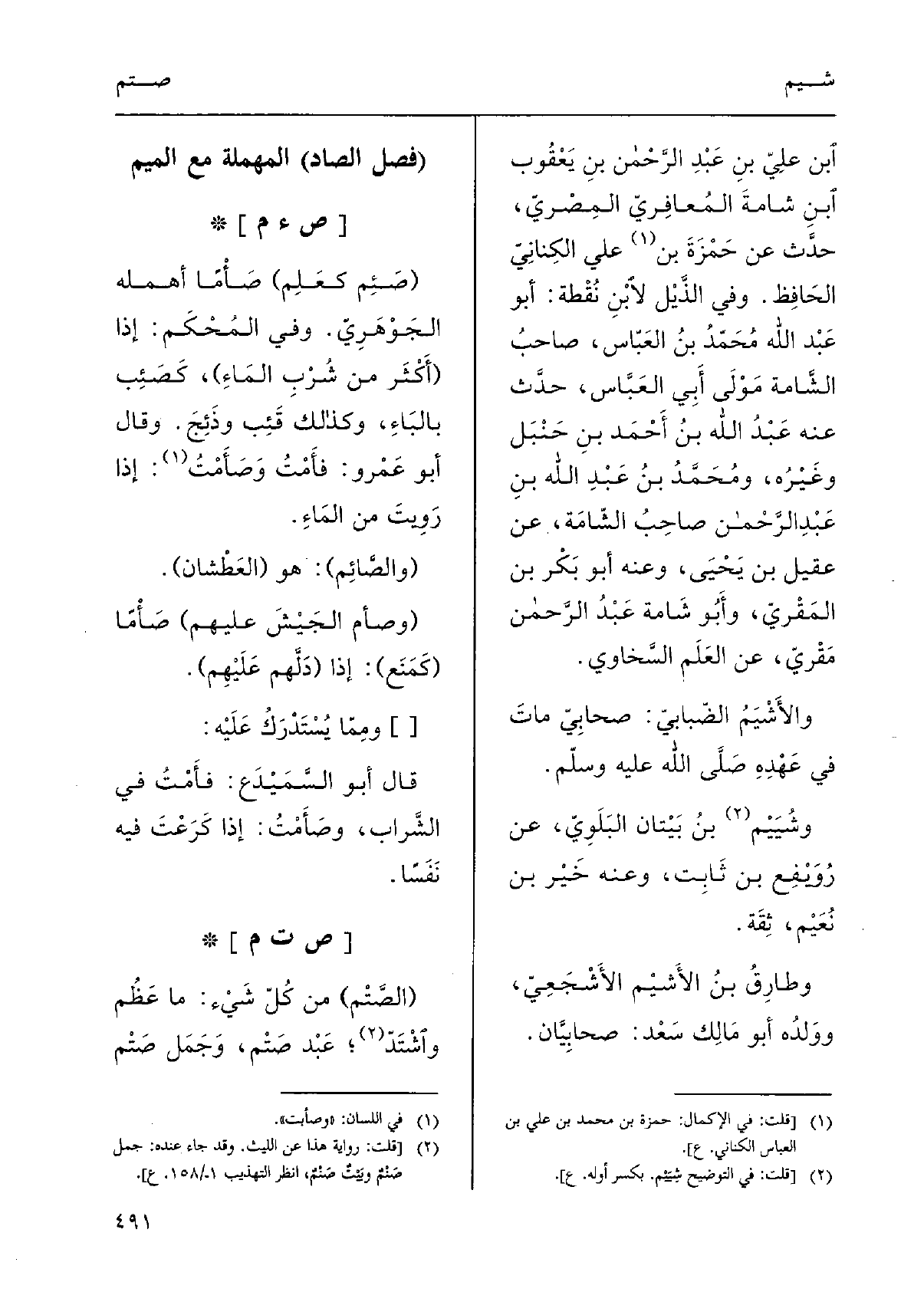 (فصل الصَّاد) الْمُهْملَة مَعَ الْمِيم