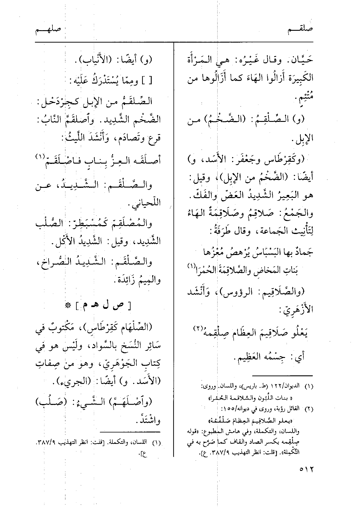 (والصَّلاَقِيم: الرؤوس) ، وَأَنْشَد الأَزْهَرِيّ: