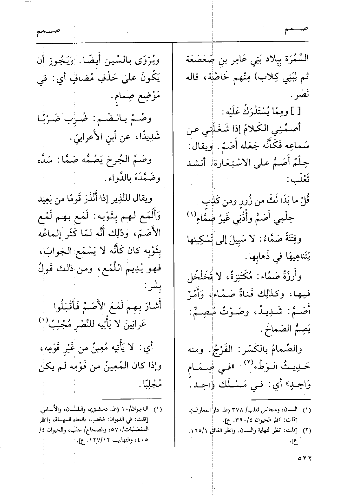 {وصُمّ بالضّم: ضُرِب ضَرْباً شَدِيداً، عَن اْبنِ الأَعرابيّ.