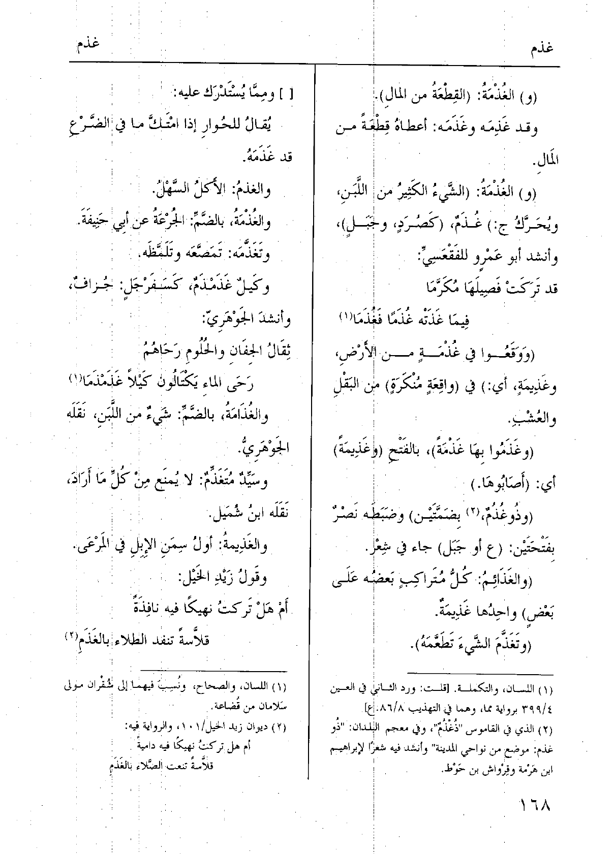 (و) الغُذْمَةُ: (الشَّيءُ الكَثِيرُ من اللَّبَنِ، ويُحَرَّكُ ج:) غُذَمٌ، (كَصُرَدٍ، وجَبَلٍ) ، وَأنْشد أَبُو عَمْروٍ للفَقْعَسِيِّ: