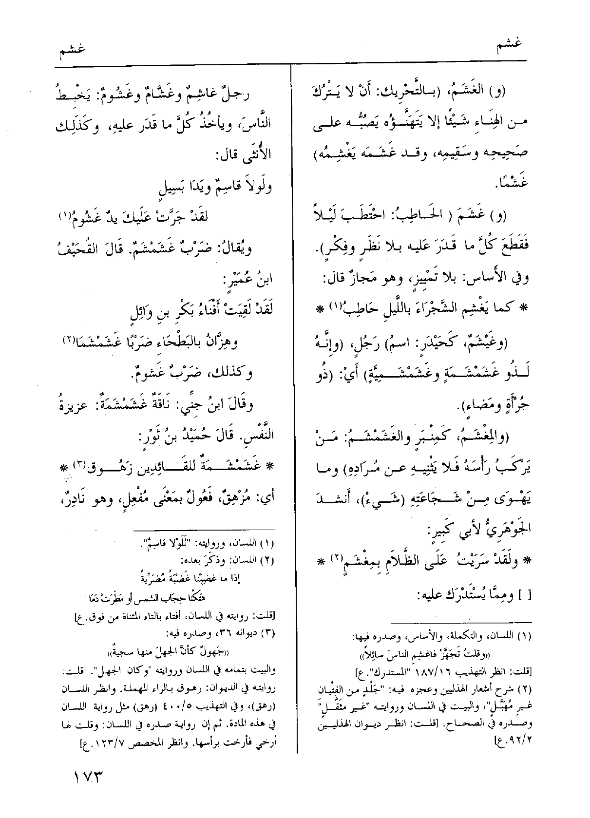 رجلٌ غاشِمٌ وغَشَّامٌ وغَشُومٌ: يَخْبِطُ النَّاسَ، ويأخُذُ كُلَّ مَا قَدَر عَلَيْهِ، وكَذَلِك الأُنثَى قَالَ: