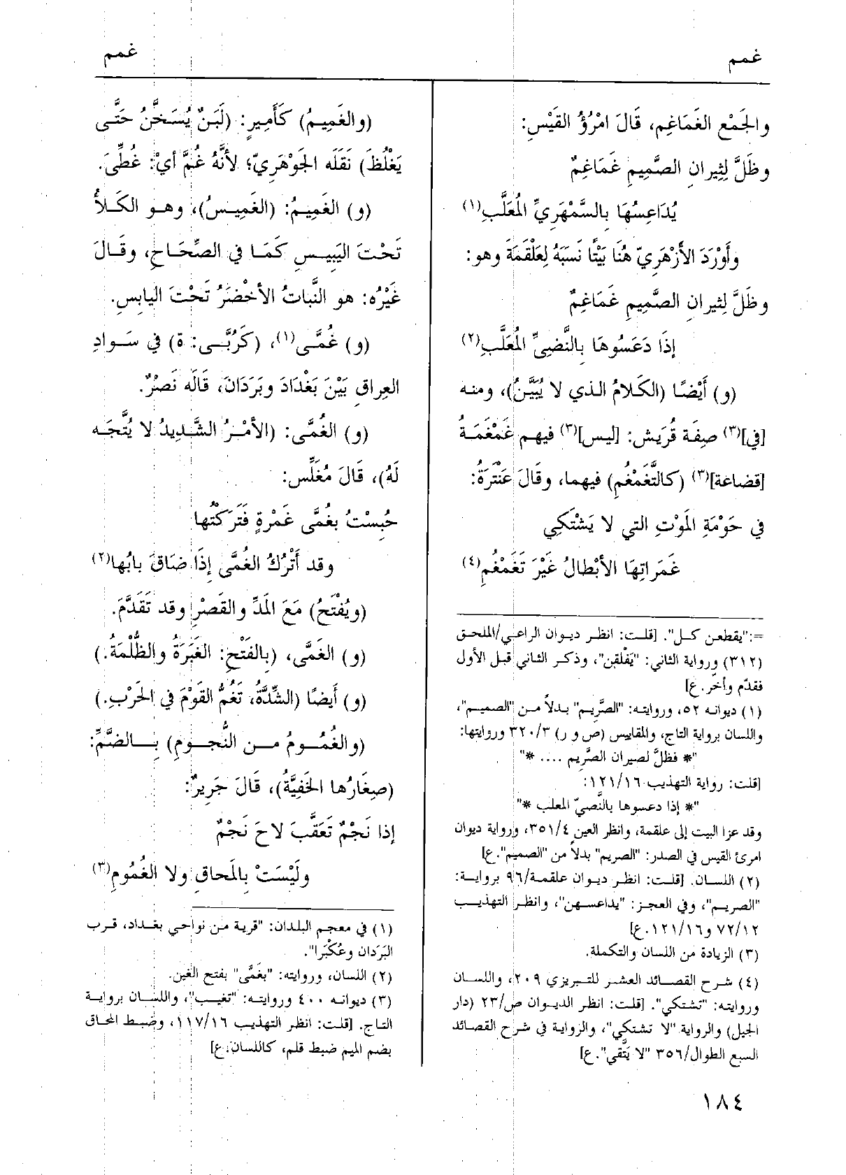 وأَوْرَدَ الأَزْهَرِيّ هُنَا بَيْتًا نَسَبَهُ لِعَلْقَمَةَ وَهُوَ: