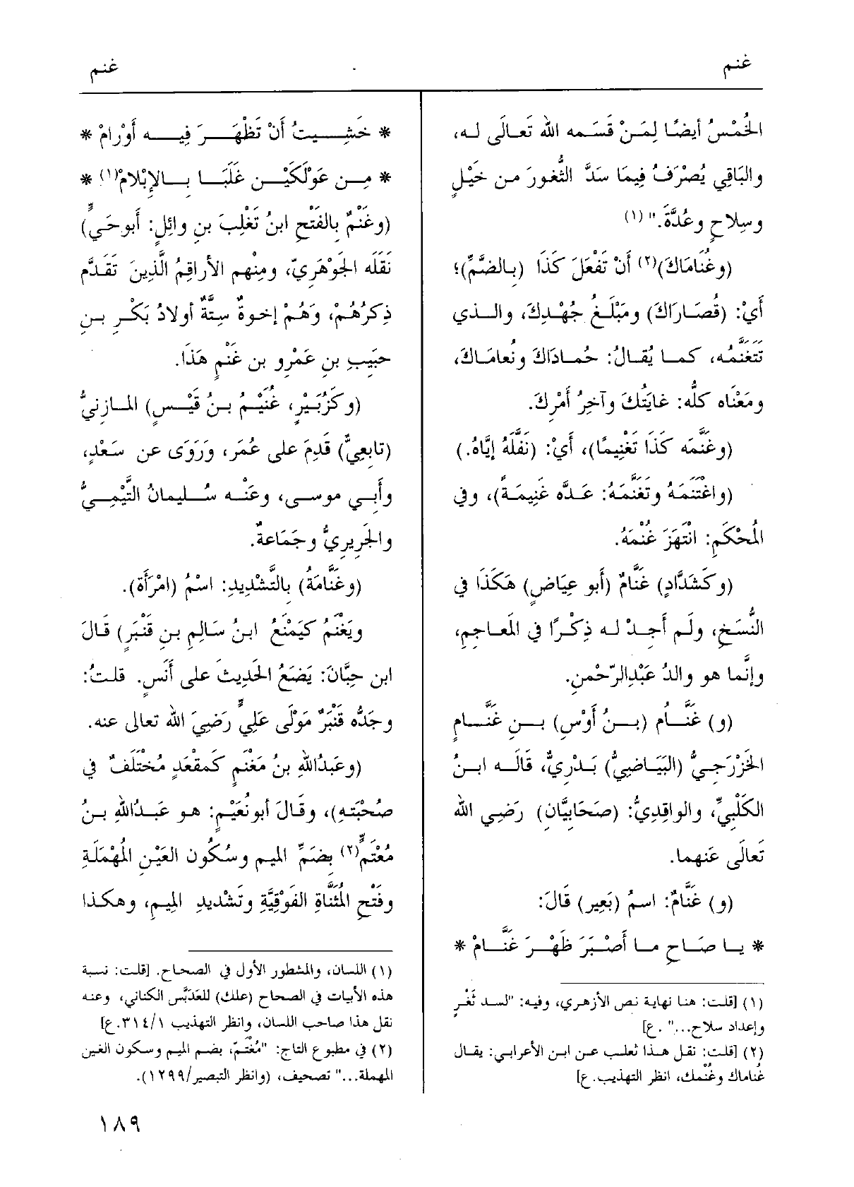 (و) غَنَّامٌ: اسمُ (بَعِير) قَالَ: