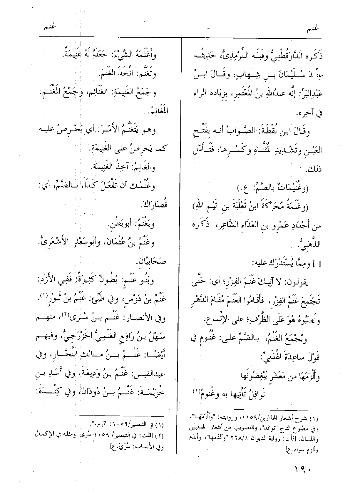 ويُجْمَعُ الغُنْمُ، بالضَّمِّ على غُنُومٍ فِي قَوْل ساعِدَةَ الهُذَلِيِّ: