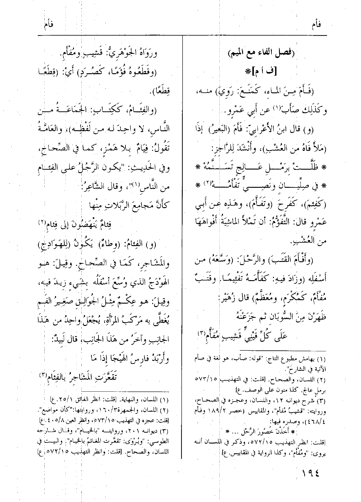 (و) قَالَ ابنُ الأَعْرابِيّ: فَأَمَ (البَعيرُ) إذَا (مَلأَ فَاهُ من العُشْبِ) ، وأَنْشَدَ لِلرَّاجِزِ: