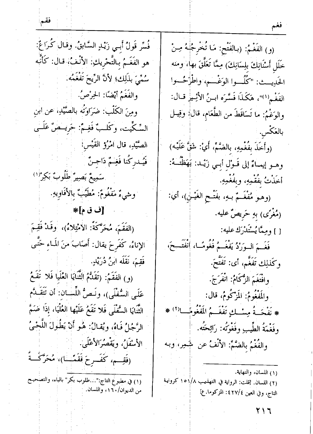 (وَهُوَ مُفْغَمٌ بهِ، بفَتْحِ الغَيْنِ) ، أَي: (مُغْرًى) بِهِ حَرِيصٌ عَلَيْهِ. [] ومِمَّا يُسْتَدْرَك عَلَيْهِ: