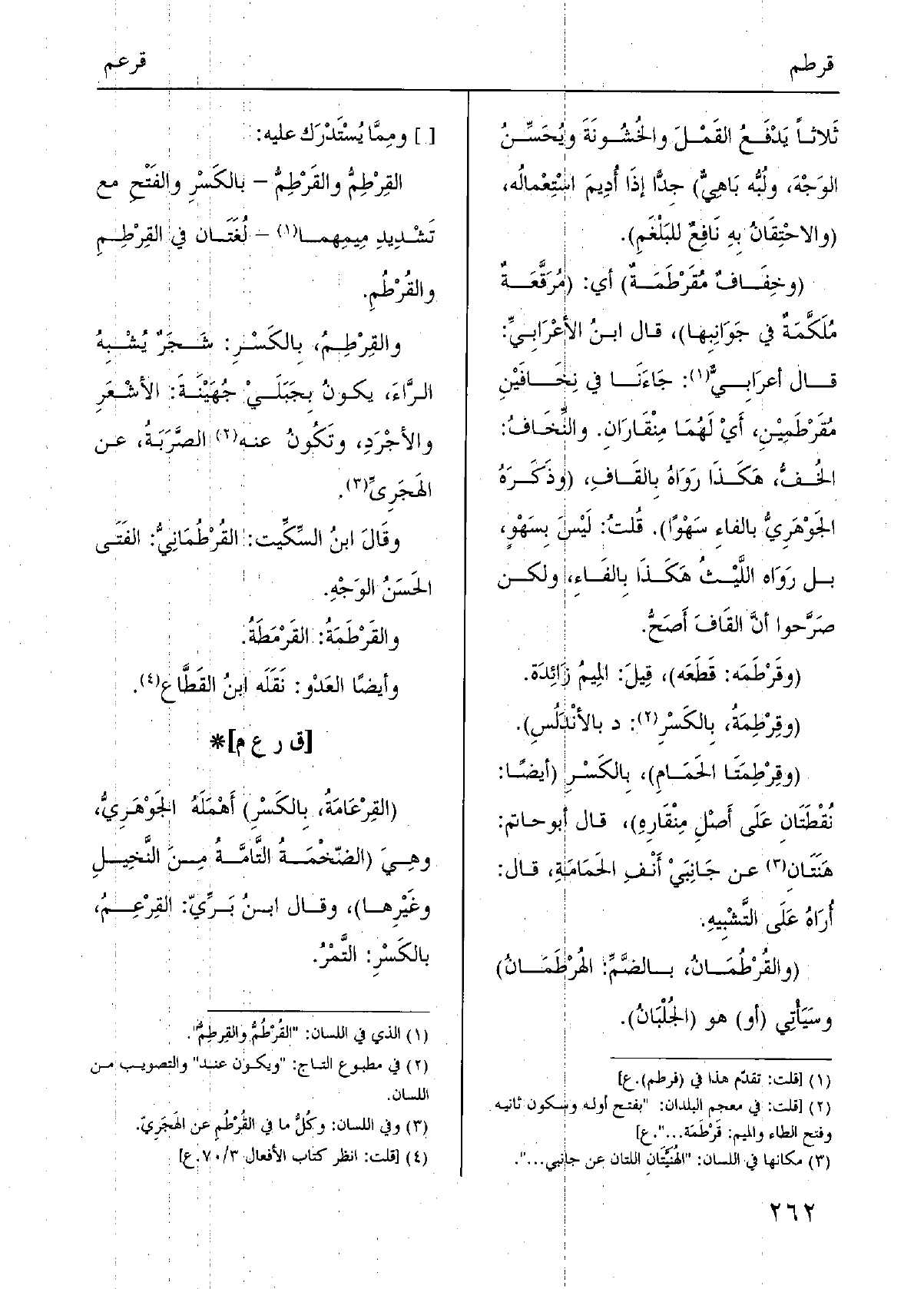 (والقُرْطُمَانُ، بالضَّمِّ: الهُرْطَمَانُ) وسَيَأْتِي (أَو) هُوَ (الجُلْبَانُ) . [] ومِمَّا يُسْتَدرَك عَلَيْهِ: