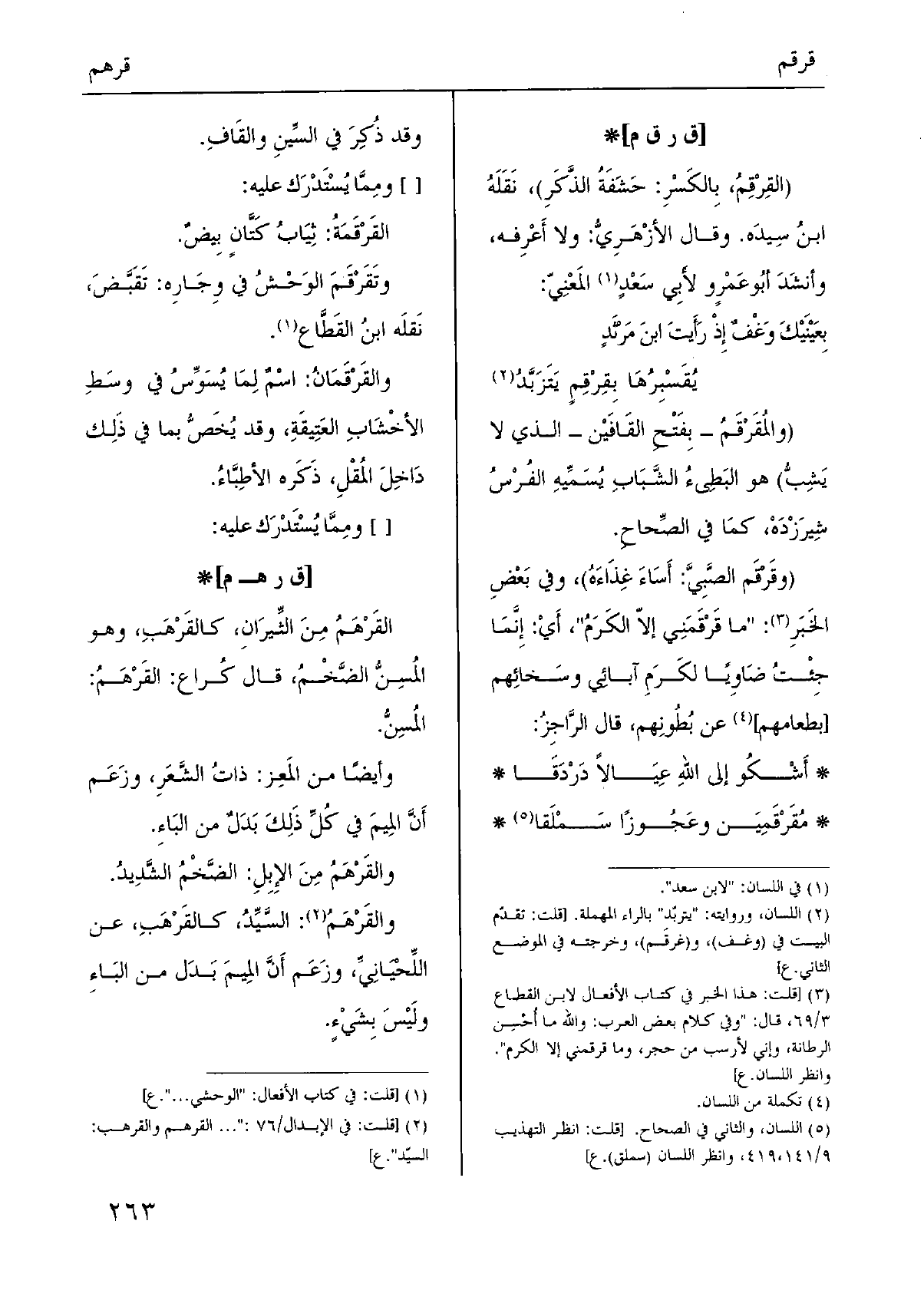وَقد ذُكِرَ فِي السِّينِ والقَافِ. [] ومِمَّا يُسْتَدْرَك عَلَيْهِ: