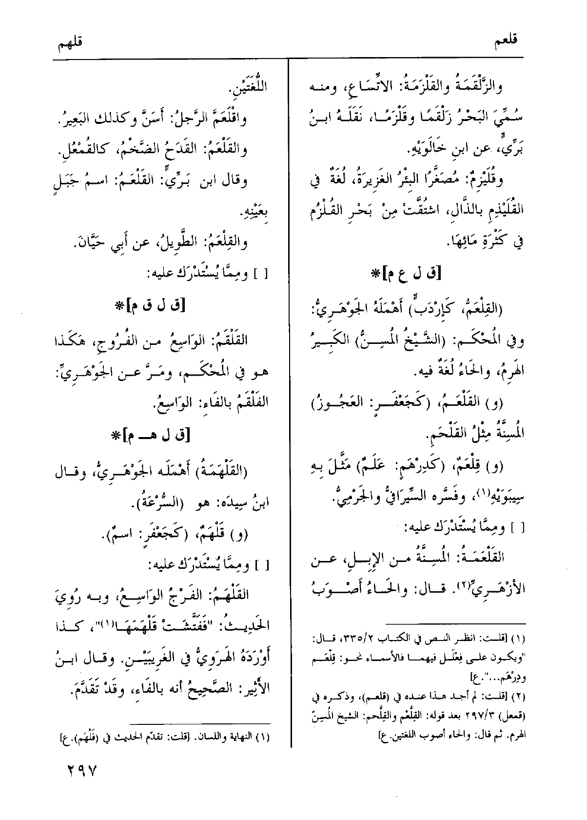 والقِلْعَمُ: الطَّوِيلُ، عَن أَبِي حَيَّانَ. [] ومِمَّا يُسْتَدْرَك عَلَيْهِ: