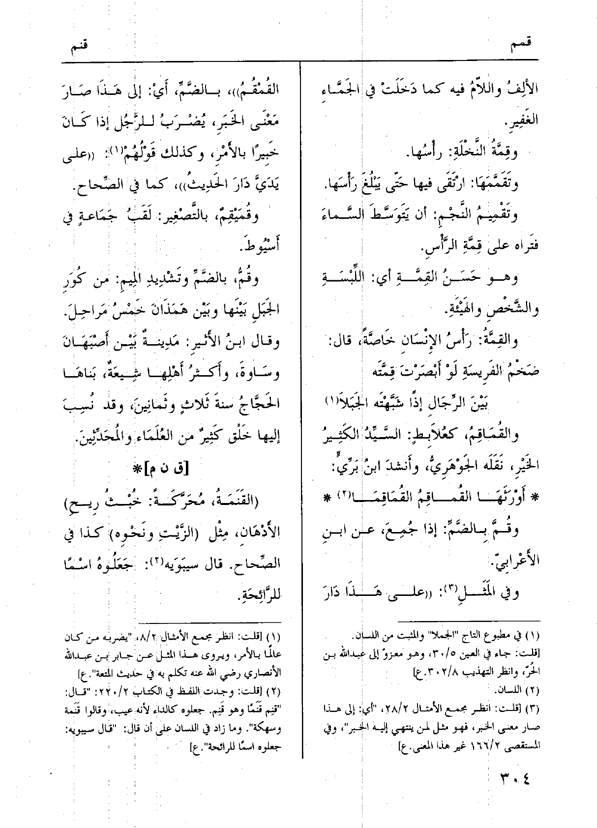 {والقِمَّةُ: رَأْسُ الإِنْسَانِ خَاصَّةً، قَالَ: