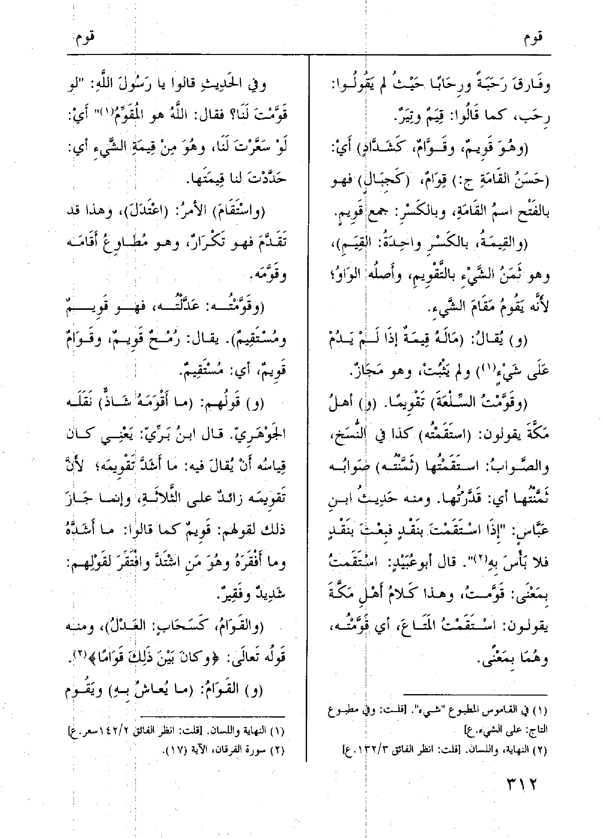 (و) } القَوَامُ: (مَا يُعاشُ بِهِ) ! ويَقُوم