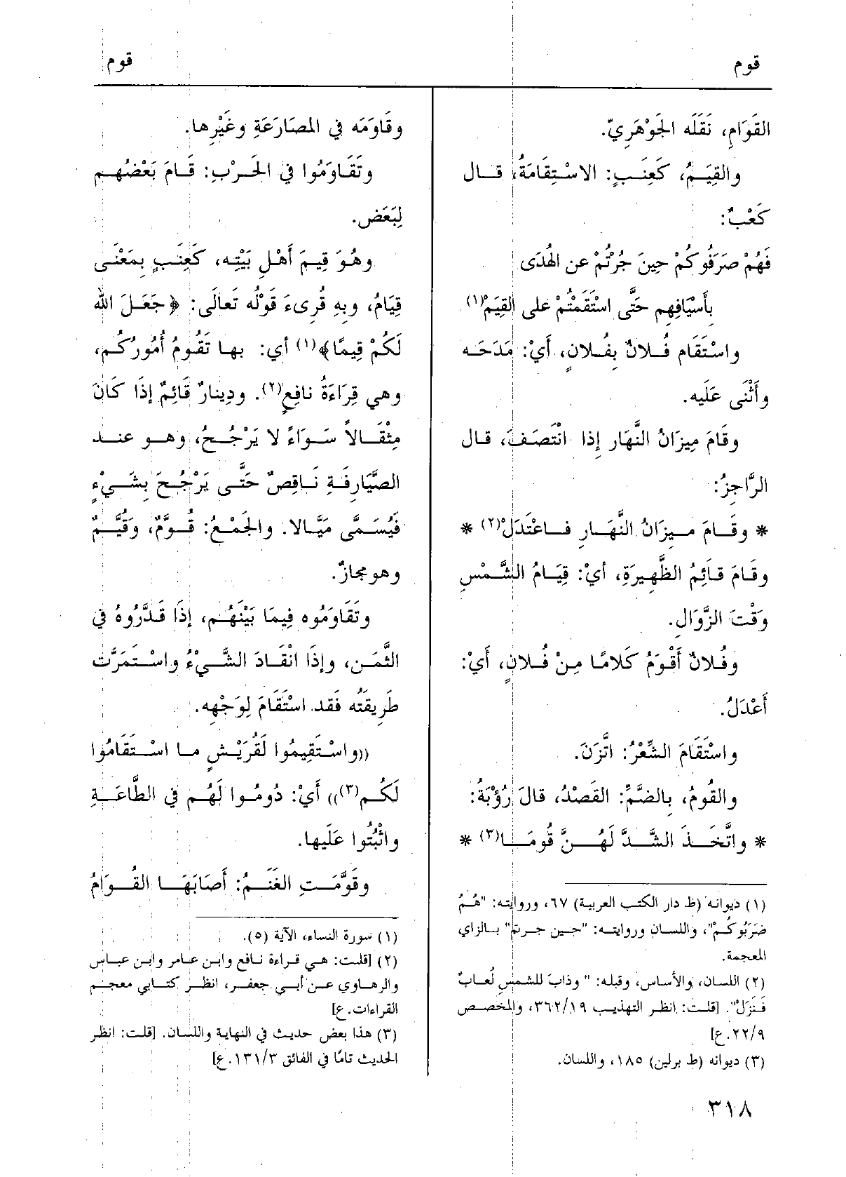 (فَهُمْ صَرَفُوكُمْ حِينَ جُرْتُمْ عَن الهُدَى ... بِاَسْيَافِهِم حَتَّى اسْتَقَتْمْتُمْ على {القِيَمْ)