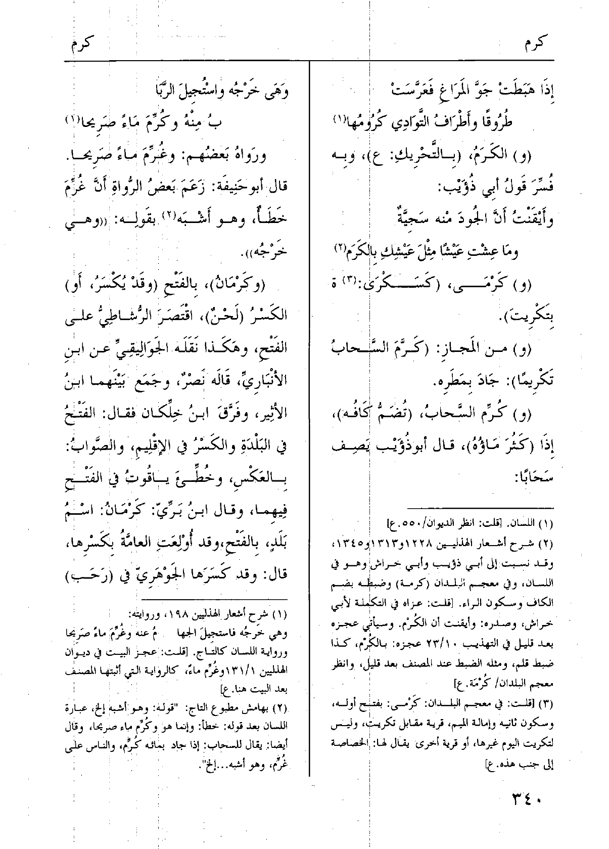 (و) الكَرَمُ، (بِالتَّحْرِيكِ: ع) ، وبِه فُسِّرَ قَولُ أبِي ذُؤَيْب: