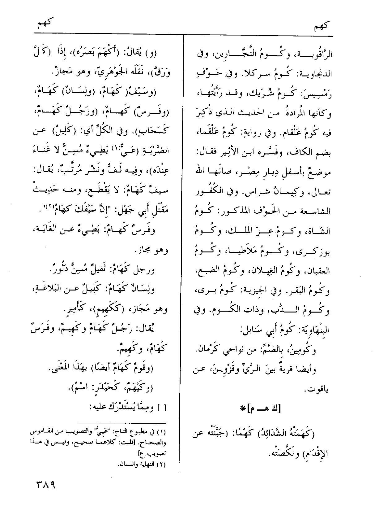 يُقال: رَجُلٌ كَهَامٌ وكَهِيمٌ، وفَرَسٌ كَهَامٌ، وكَهِيمٌ.